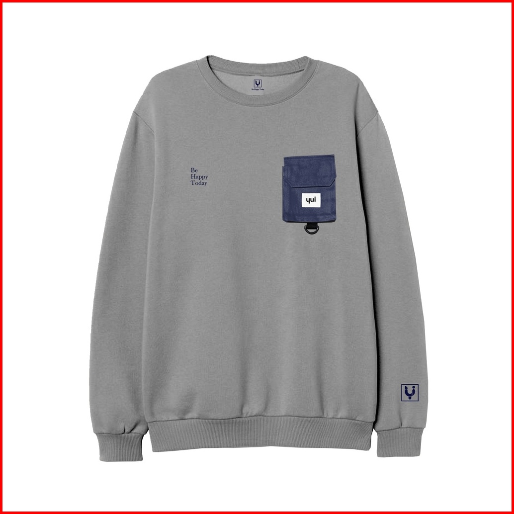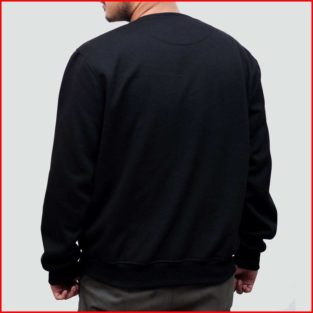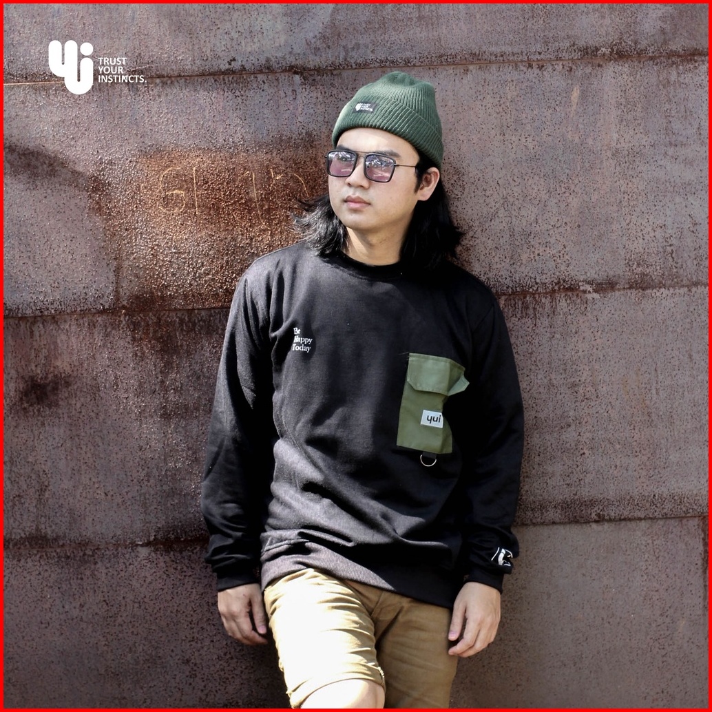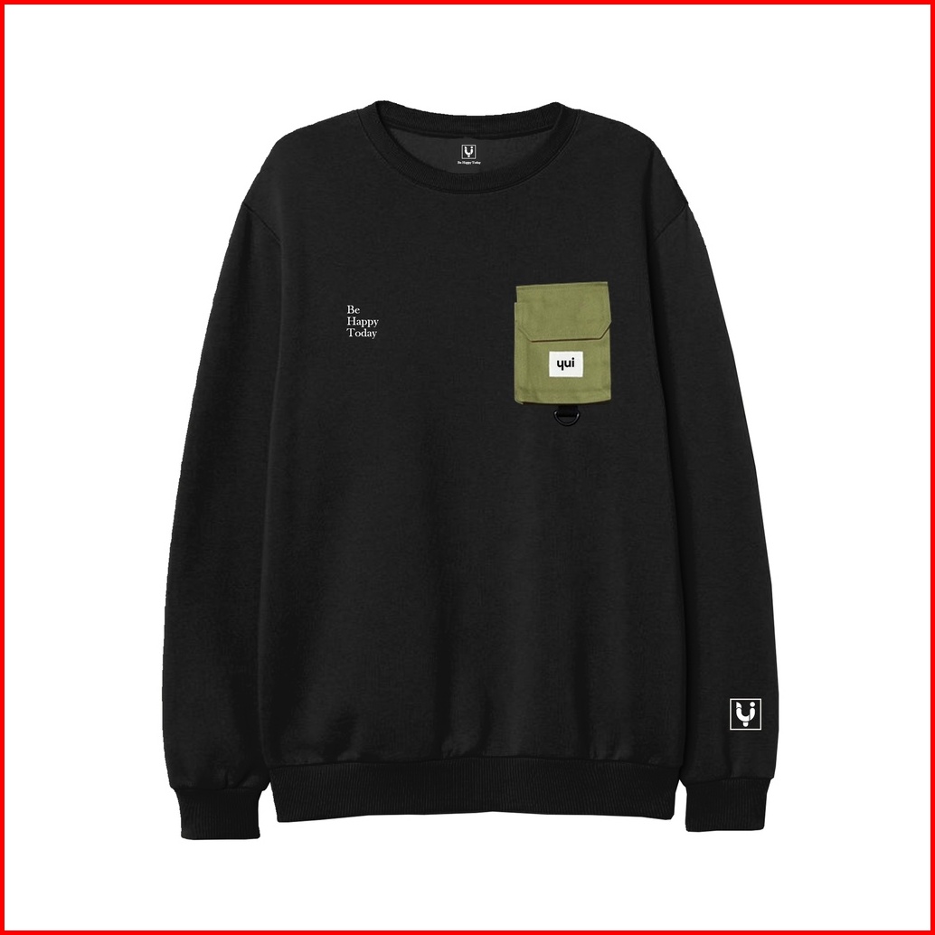 Yui Sweater Crewneck Pouch Break Black Fleece Tebal