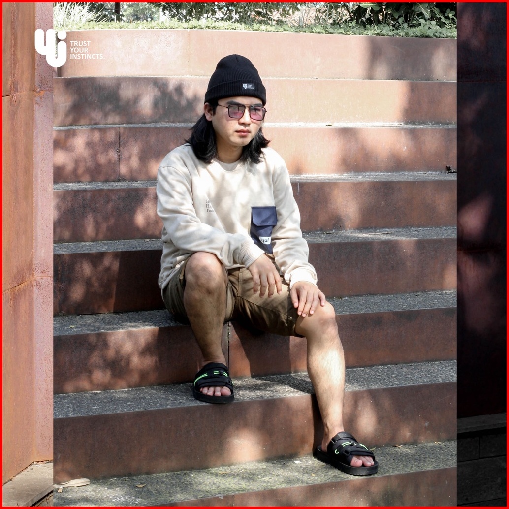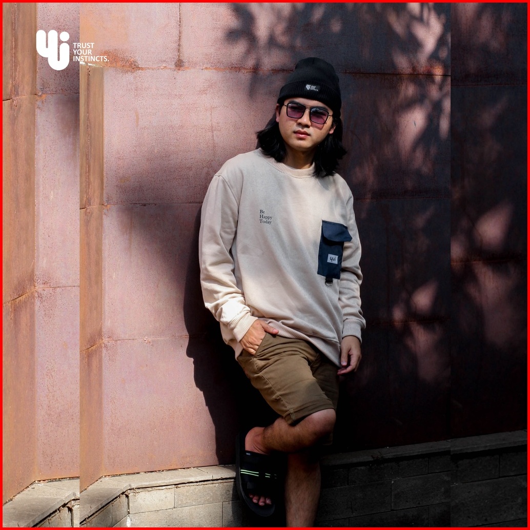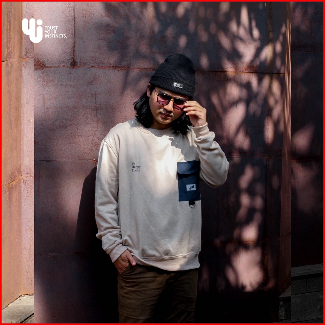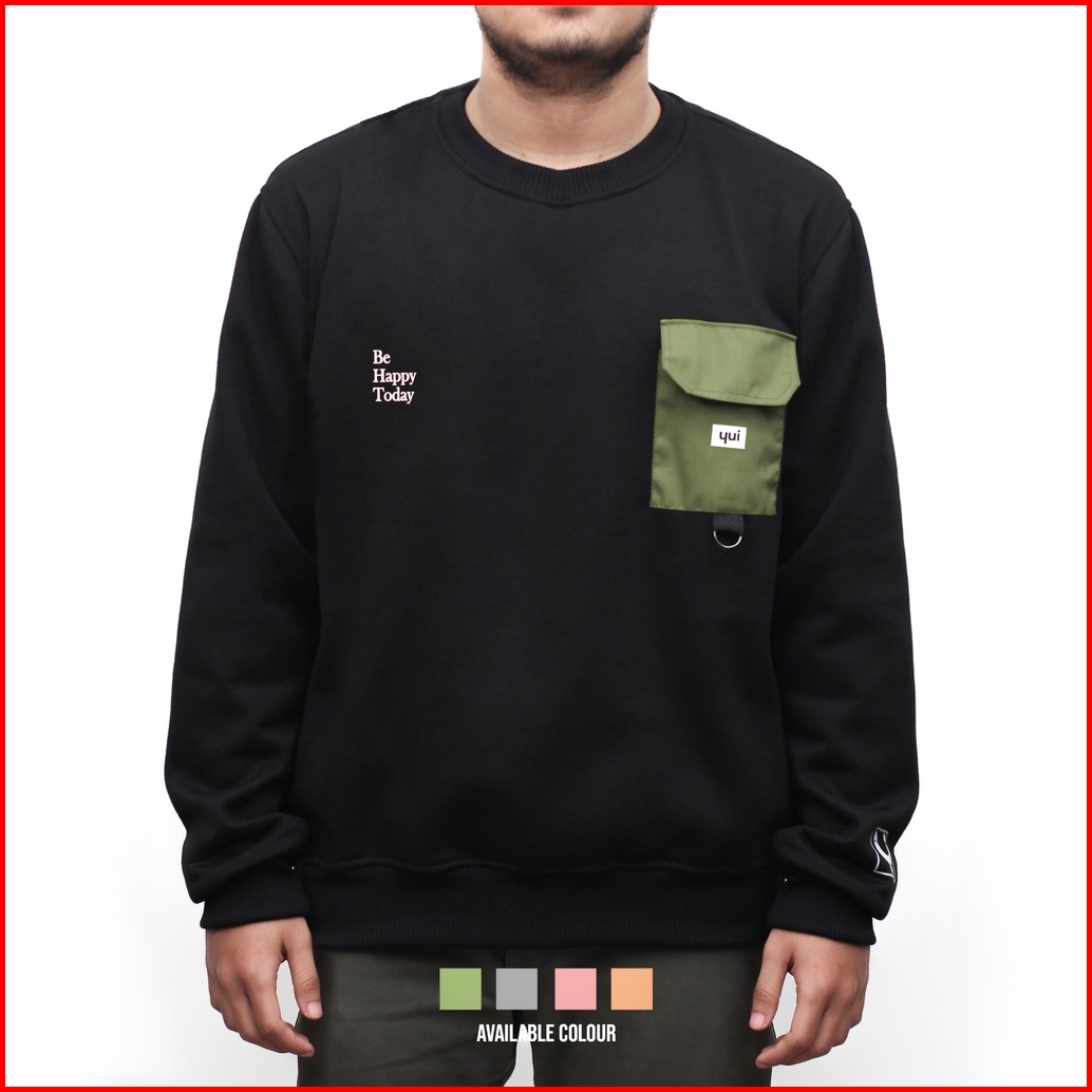Yui Sweater Crewneck Pouch Break Black Fleece Tebal
