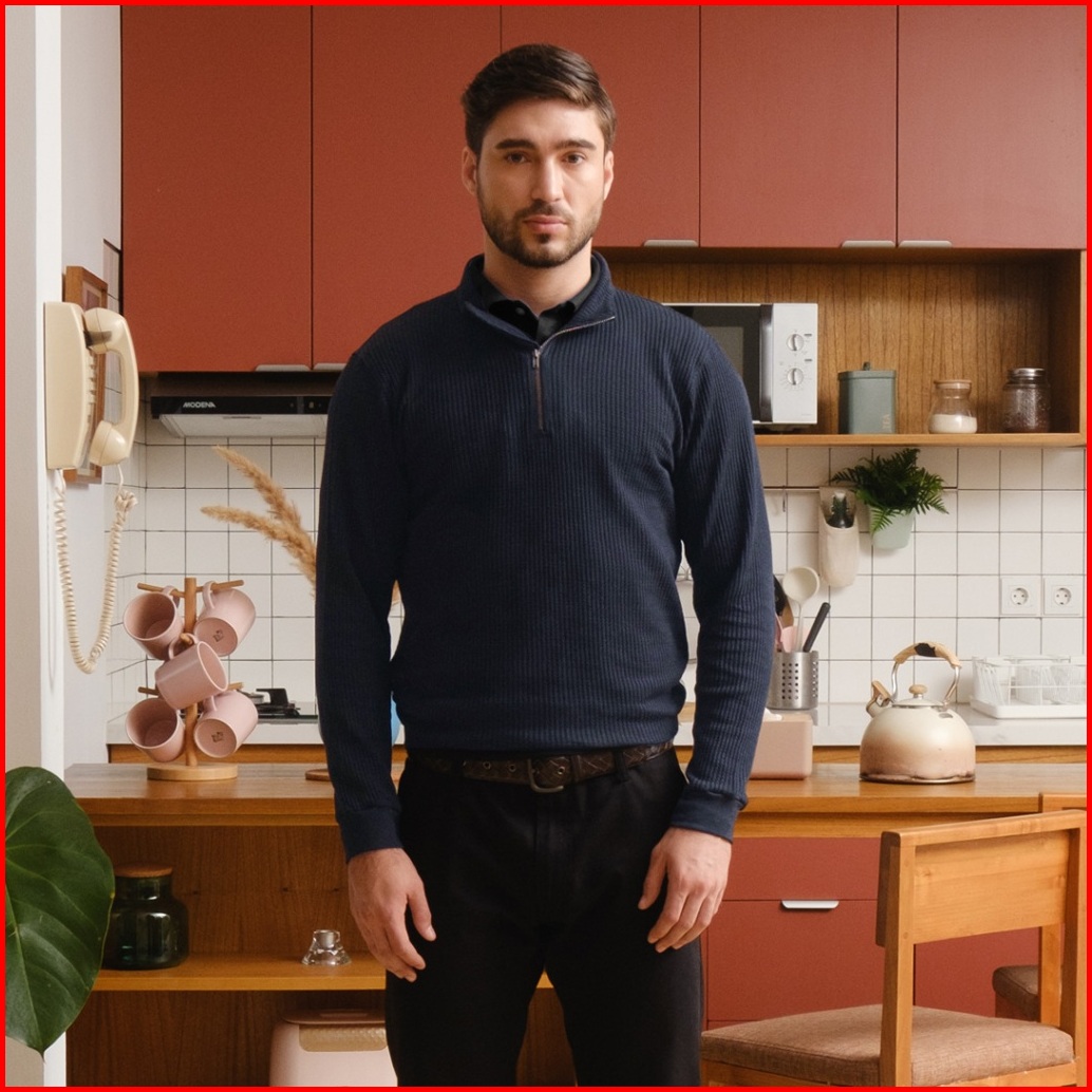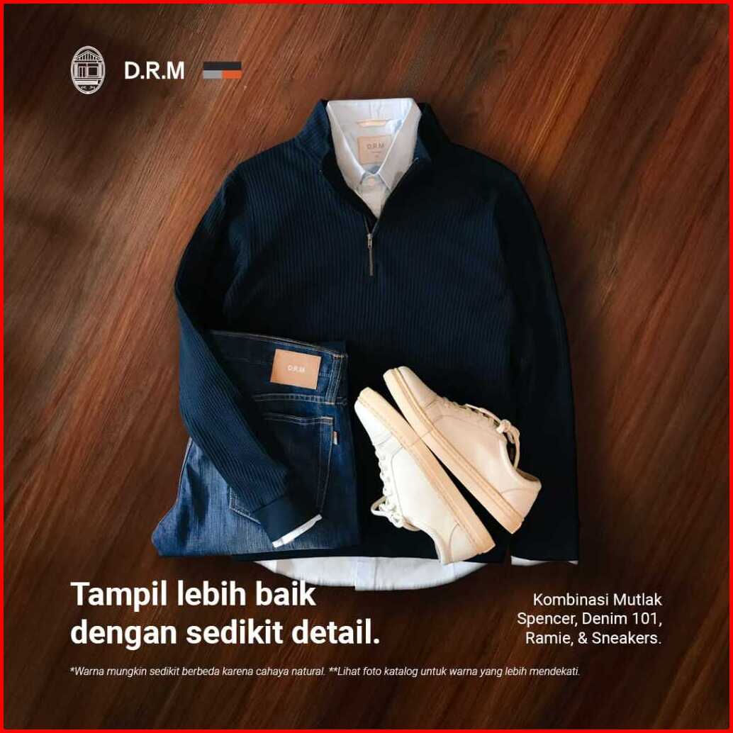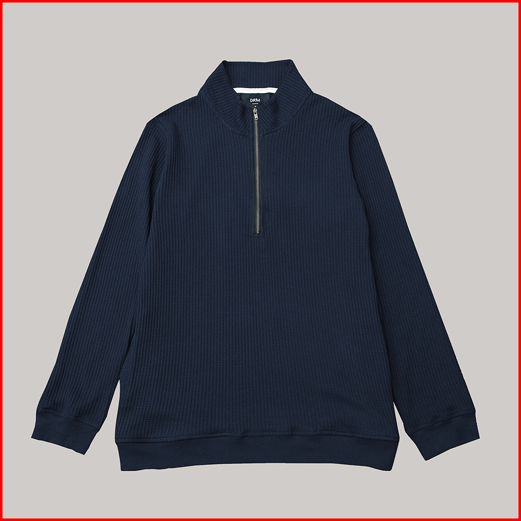 Drm Cool Breeze Sweater Pria Halfzip Waffle Spencer Navy