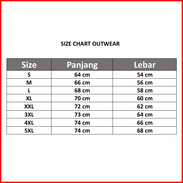 S, M, L, XL, XXL, 3XL, 4XL, 5XL