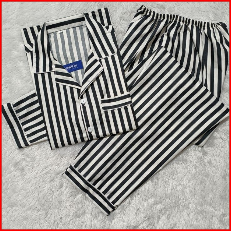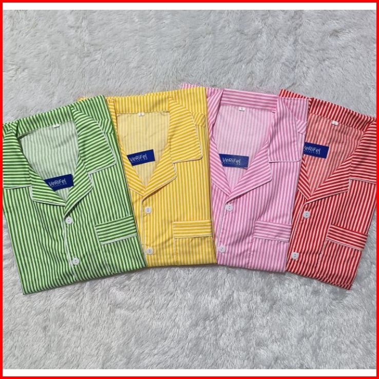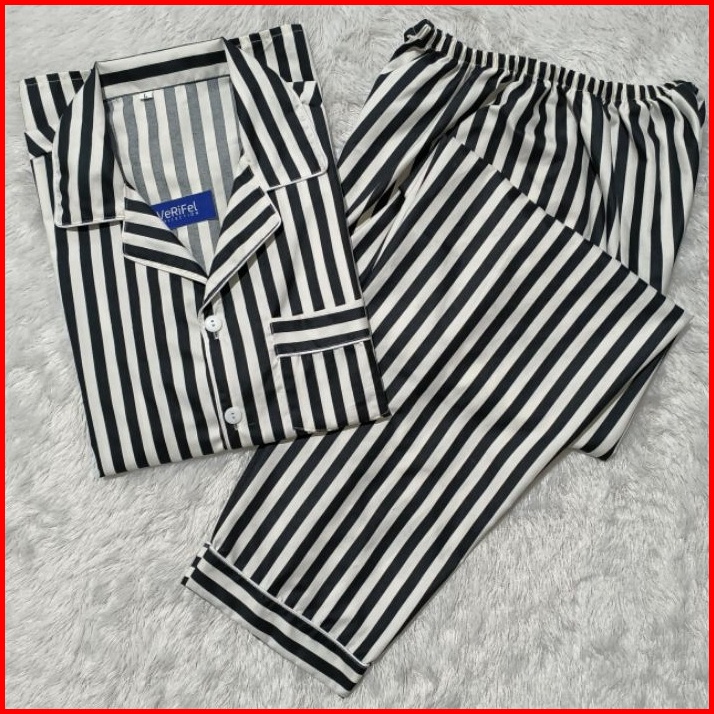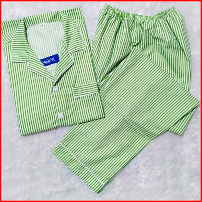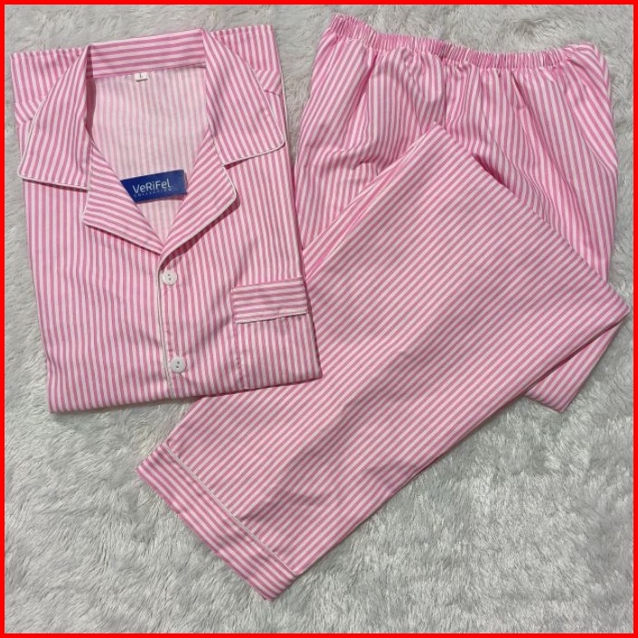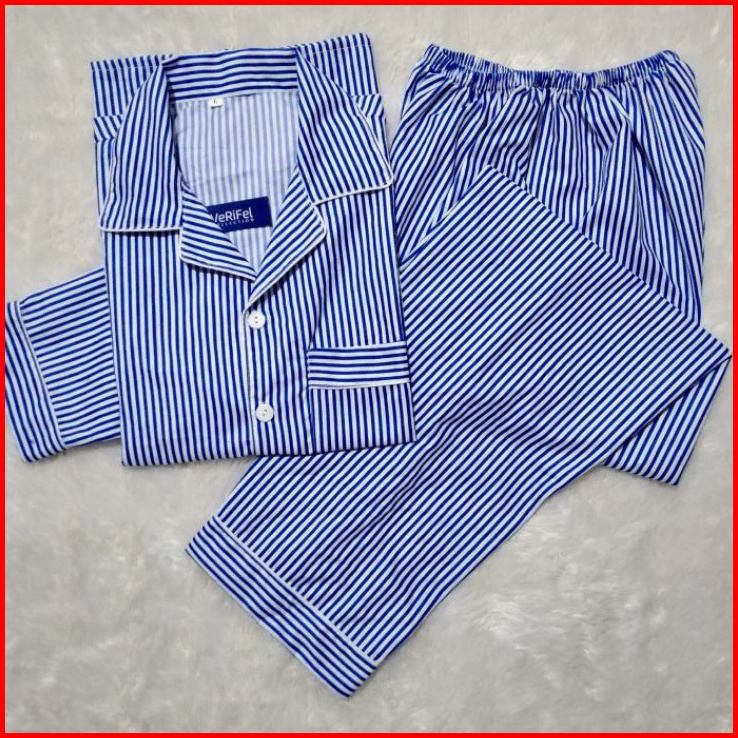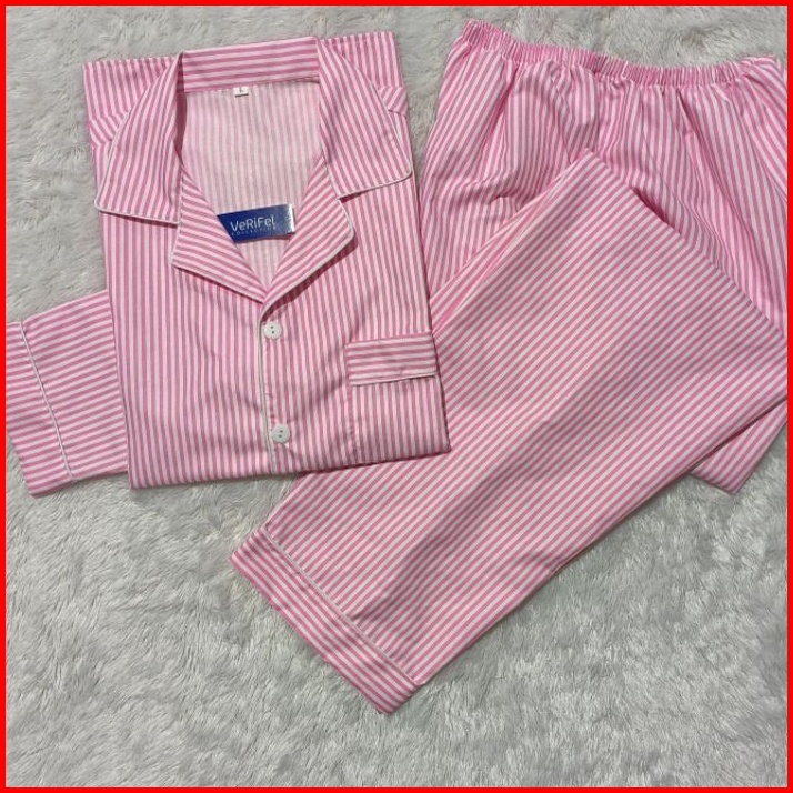 Segera Dapatkan Verifel Piyama Salur Baju Tidur Pria Wanita Remaja Dewasa Jumbo Katun Micro Halus Setelan Cp Pp Promo Mu