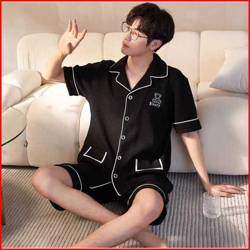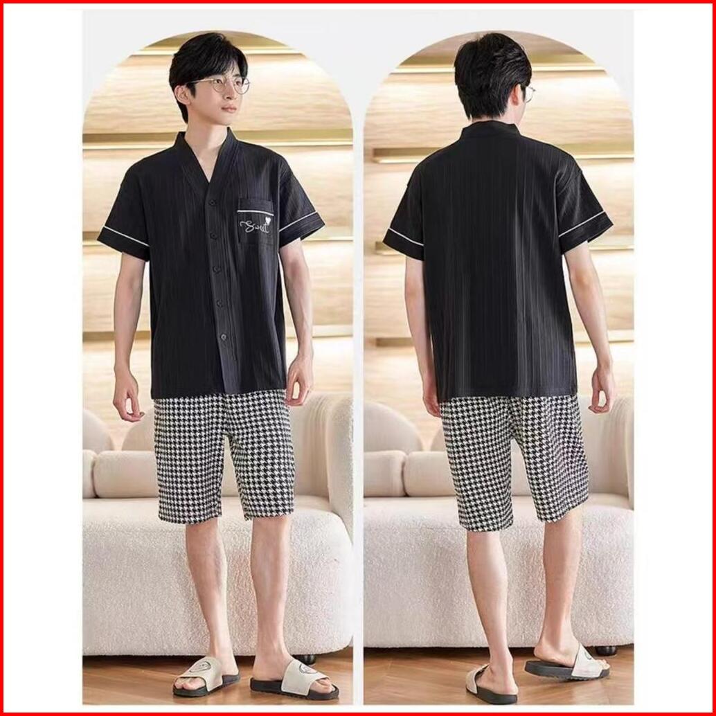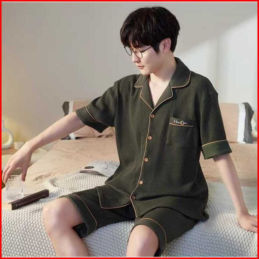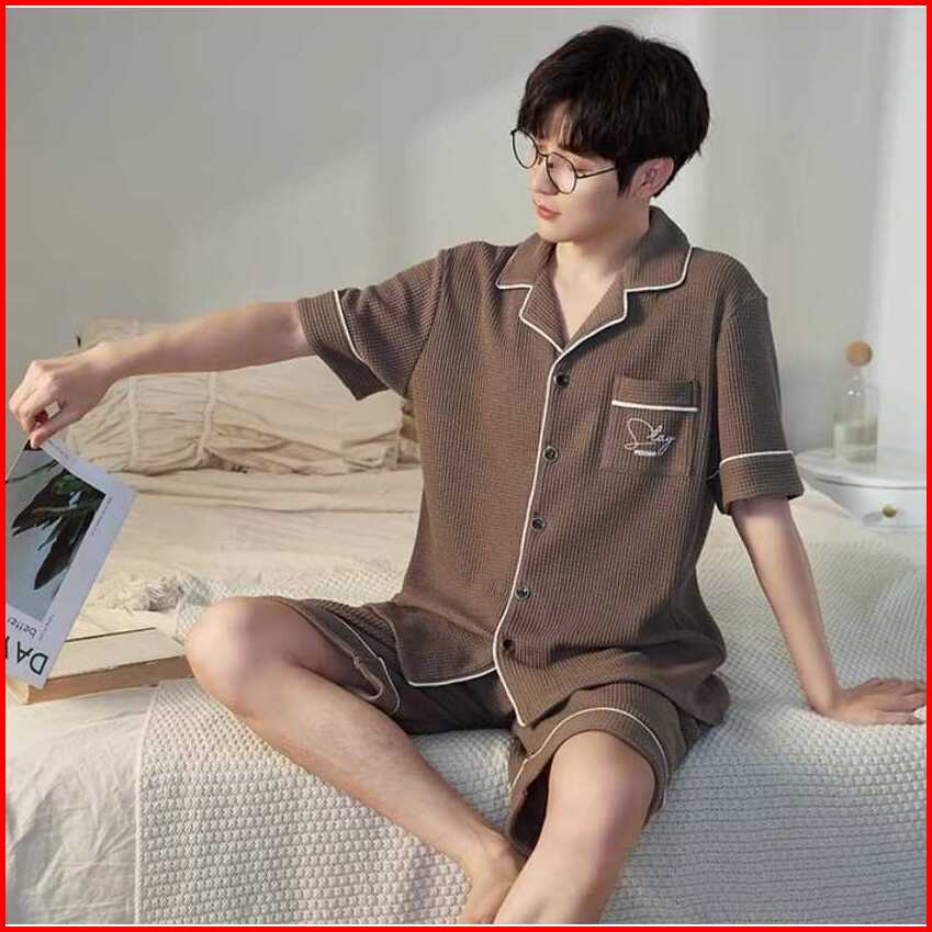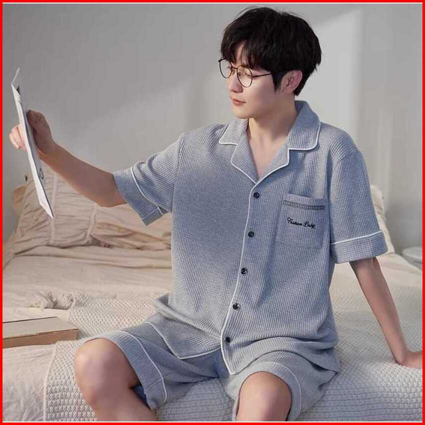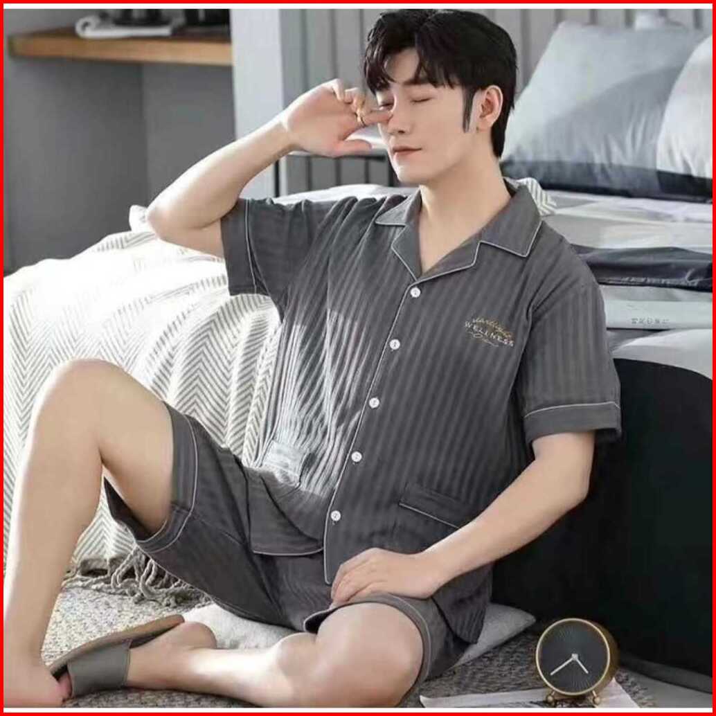 Baju Tidur Piyama Cowok Pria Lengan Pendek Celana Pendek Bahan Kaos Tebal