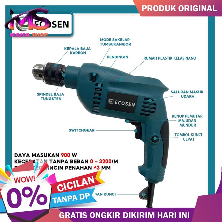 ORIGINAL / ECOSEN13MM BOR DAN GERINDA MESIN BOR LISTRIK GERINDA DAN BOR DAPAT BOX PAKET LENGKAP GERINDA