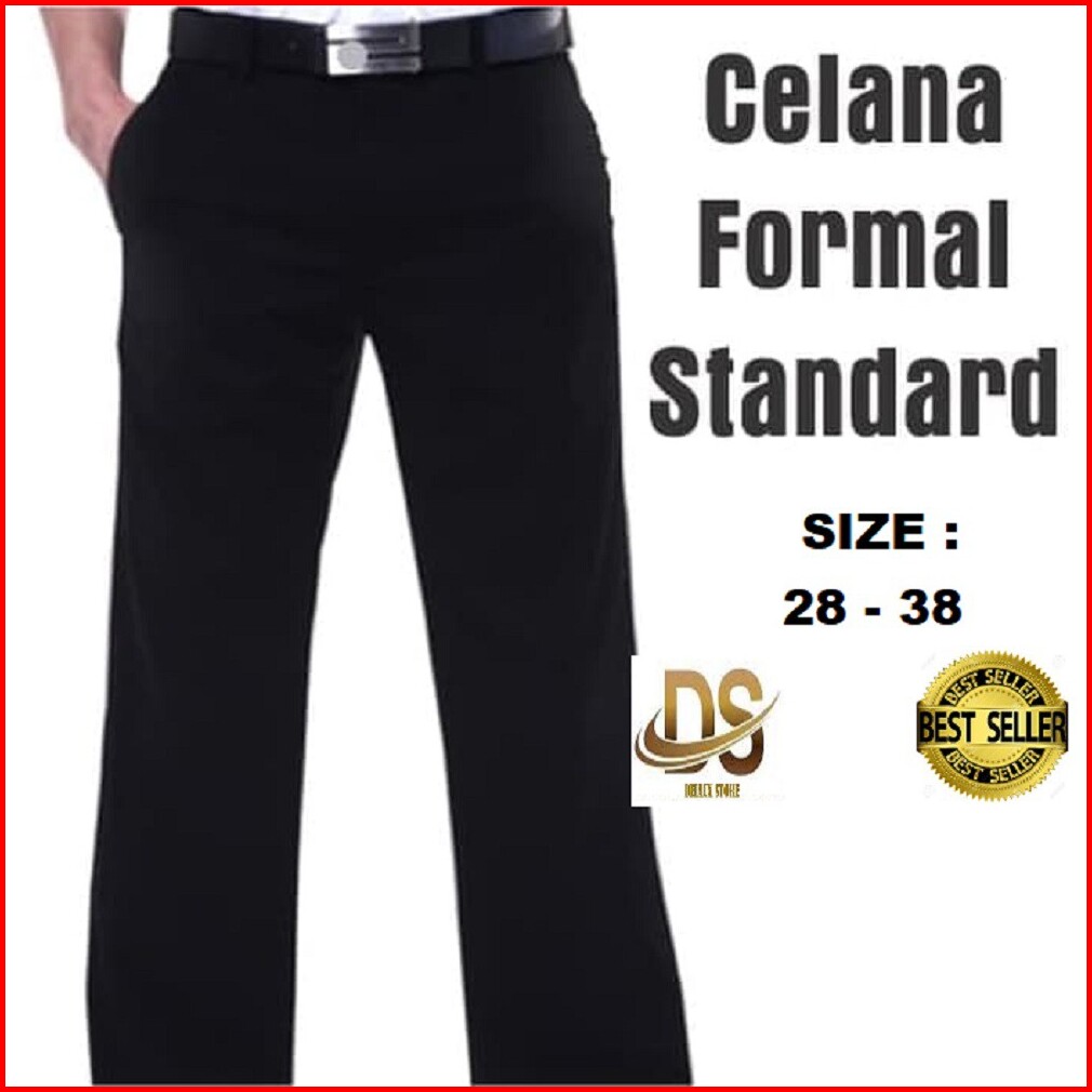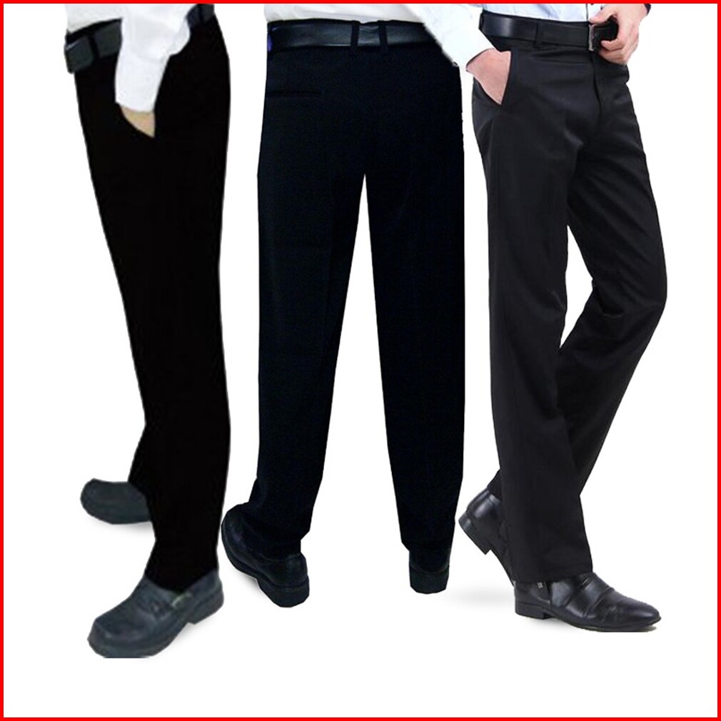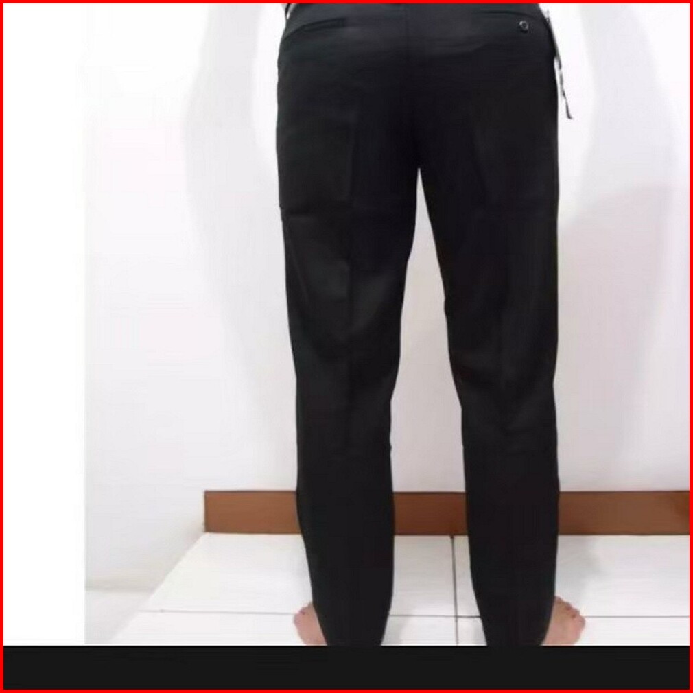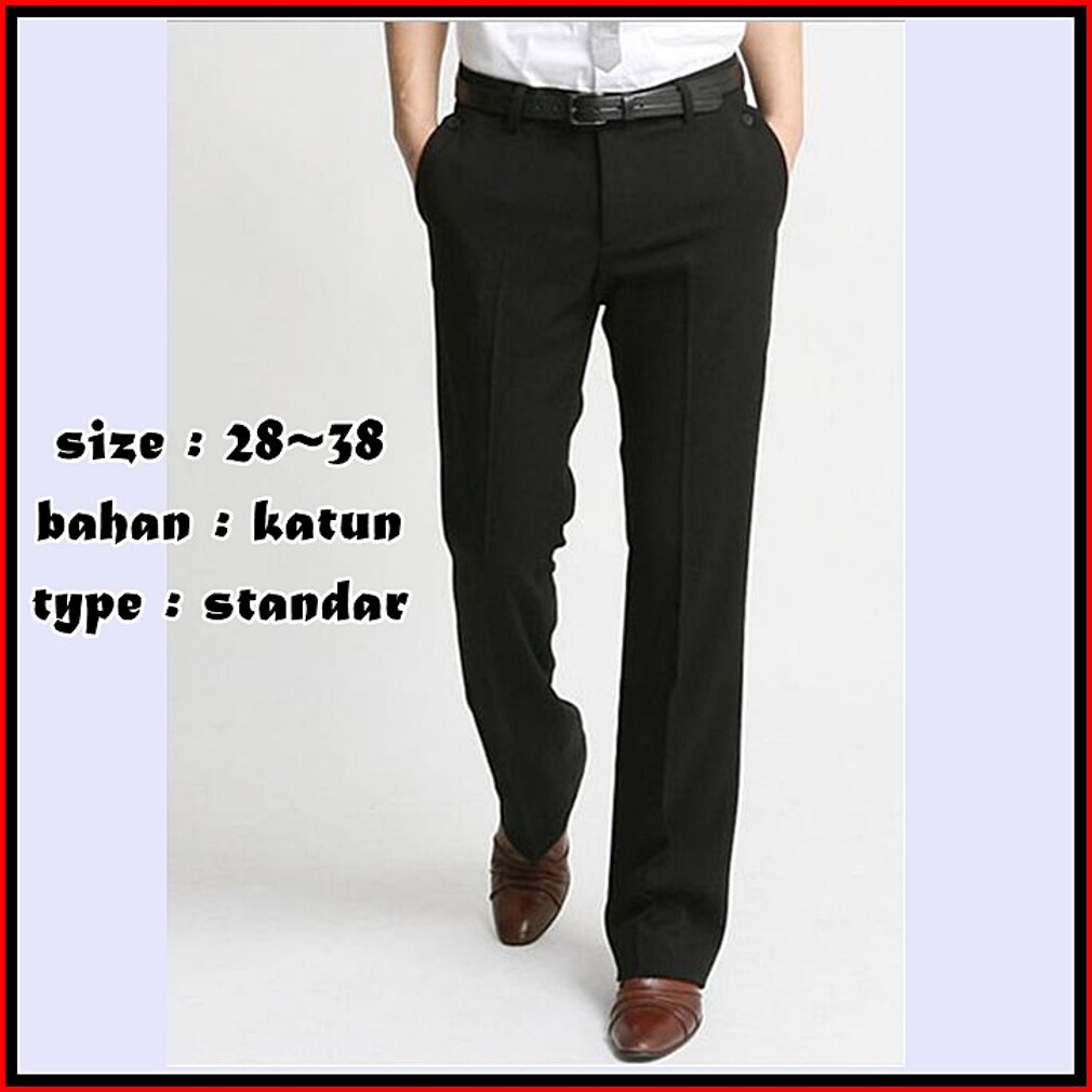 Celana Bahan Katun Standar Pria Celana Panjang Kerja Warna Hitam Ukuran 27 - 38