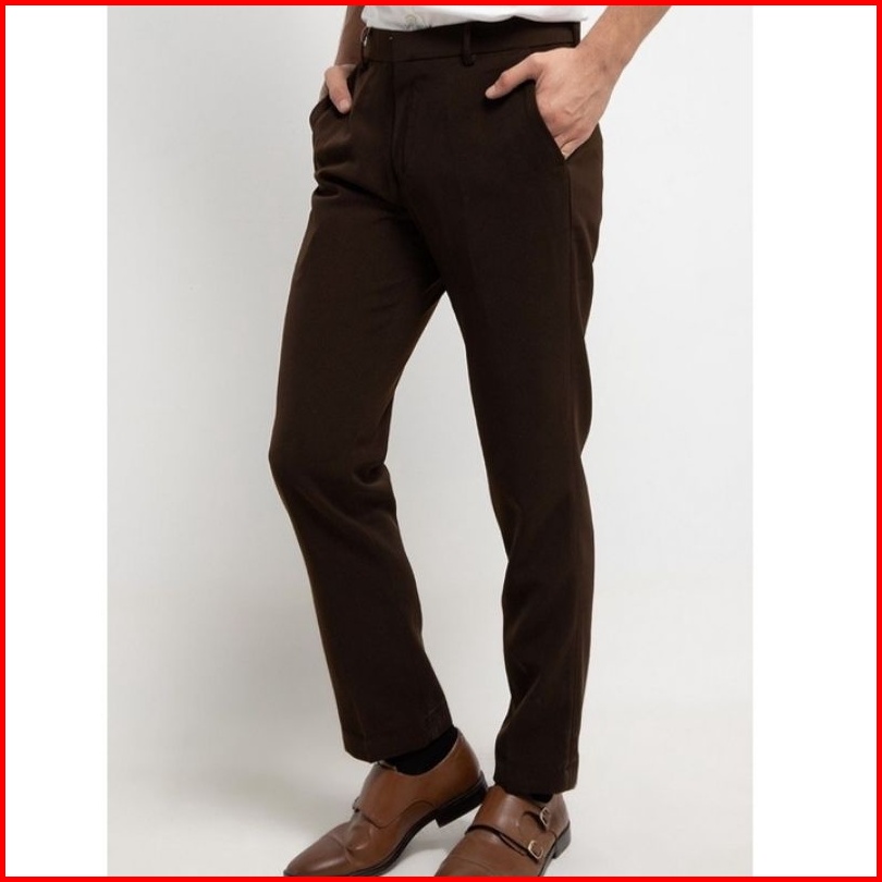 Celana Bahan Formal Pria Slim Fit Coklat Pramuka