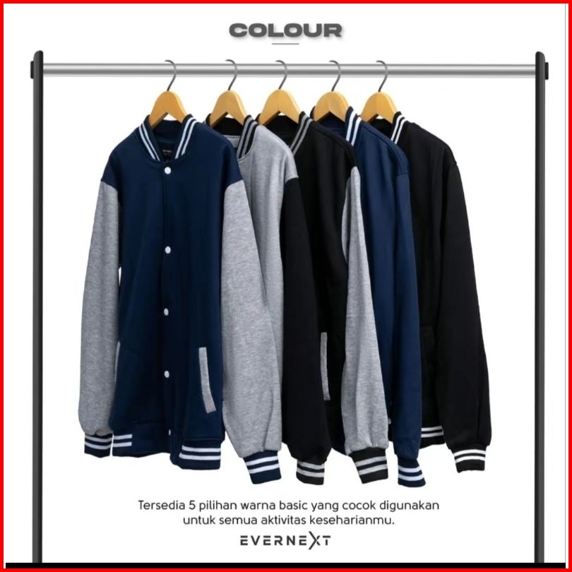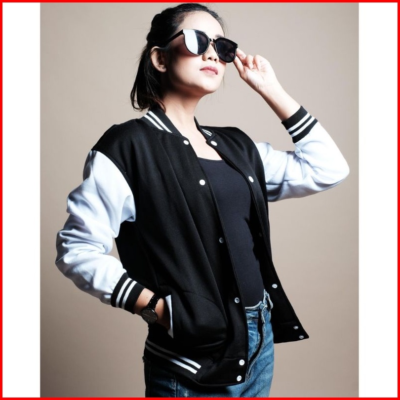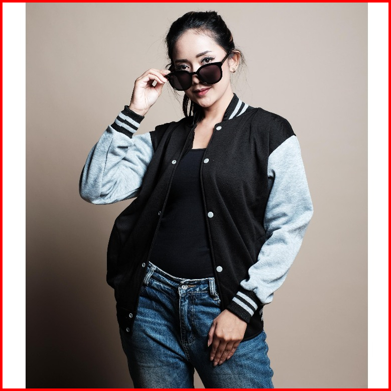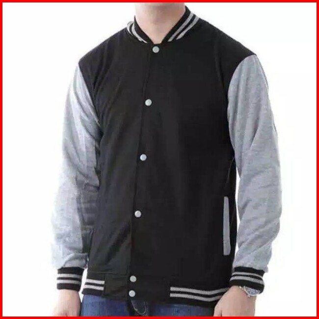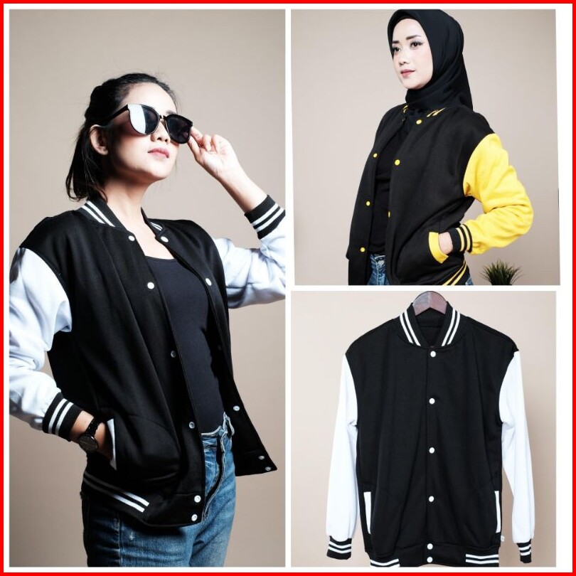 Jaket Baseball Polos Kancing Casual Jaket Bomber Polos Pria Wanita Termurah