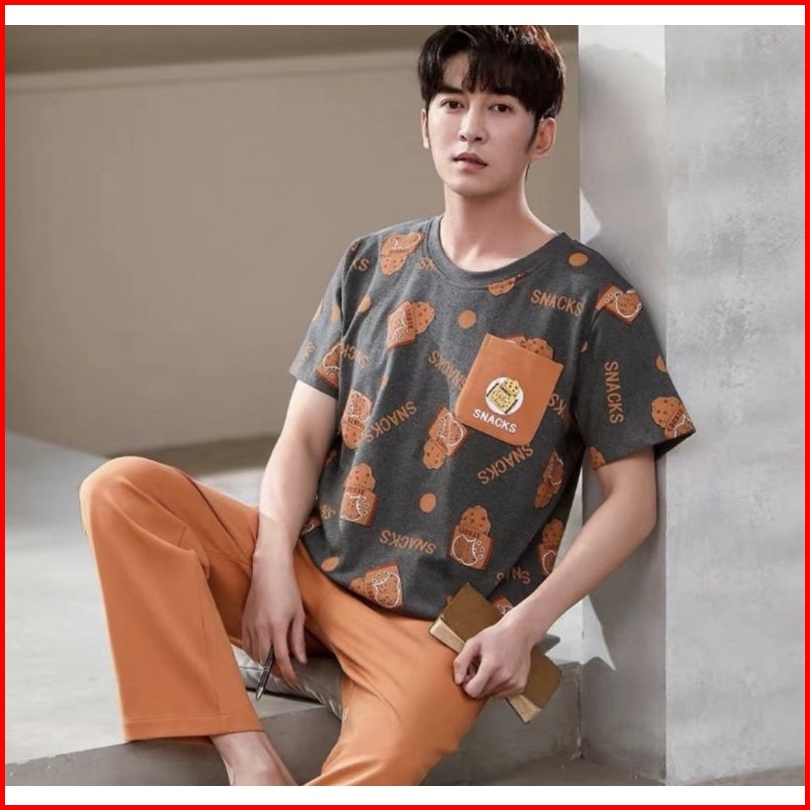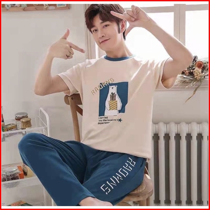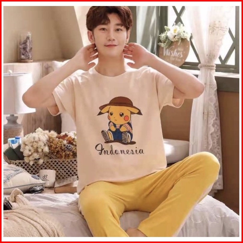 Baju Tidur Cowok Dewasa Kaos Katun Import Premium Big Size M-4xl Setelan Celana Panjang Motif Pikacu Yellow Terbaru