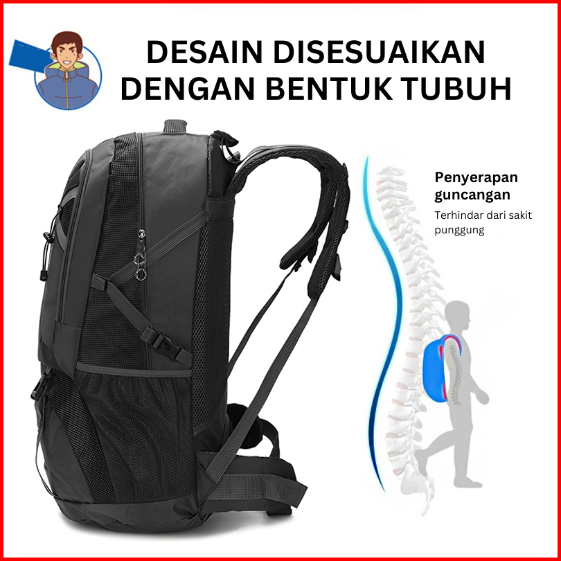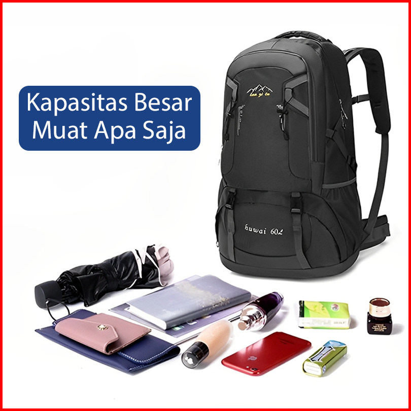 Highland Tas Ransel Pria 60l Gym Fitness Tas Punggung Cowok Jumbo Travelling Waterproof Multifungsi Tr116