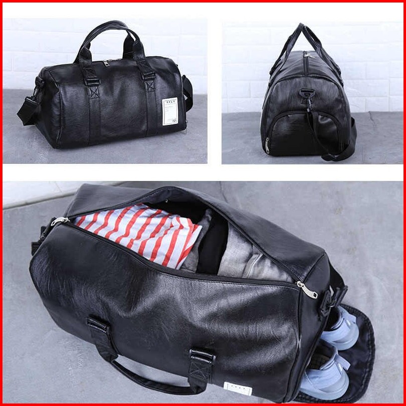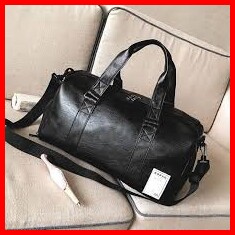 Travel Bag Gymbag Duffle Bag Hitam Kulit Kualitas Premium Ukuran Besar Ready