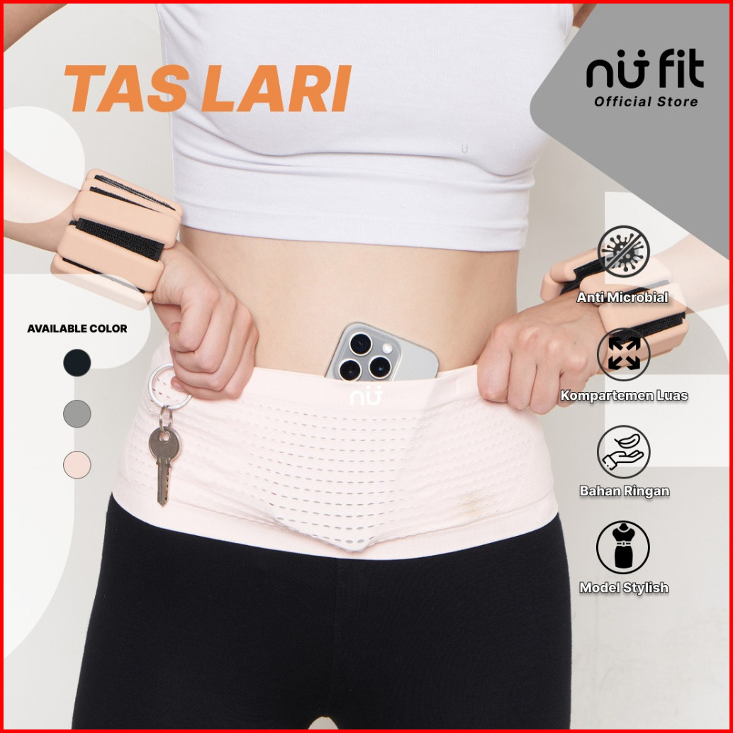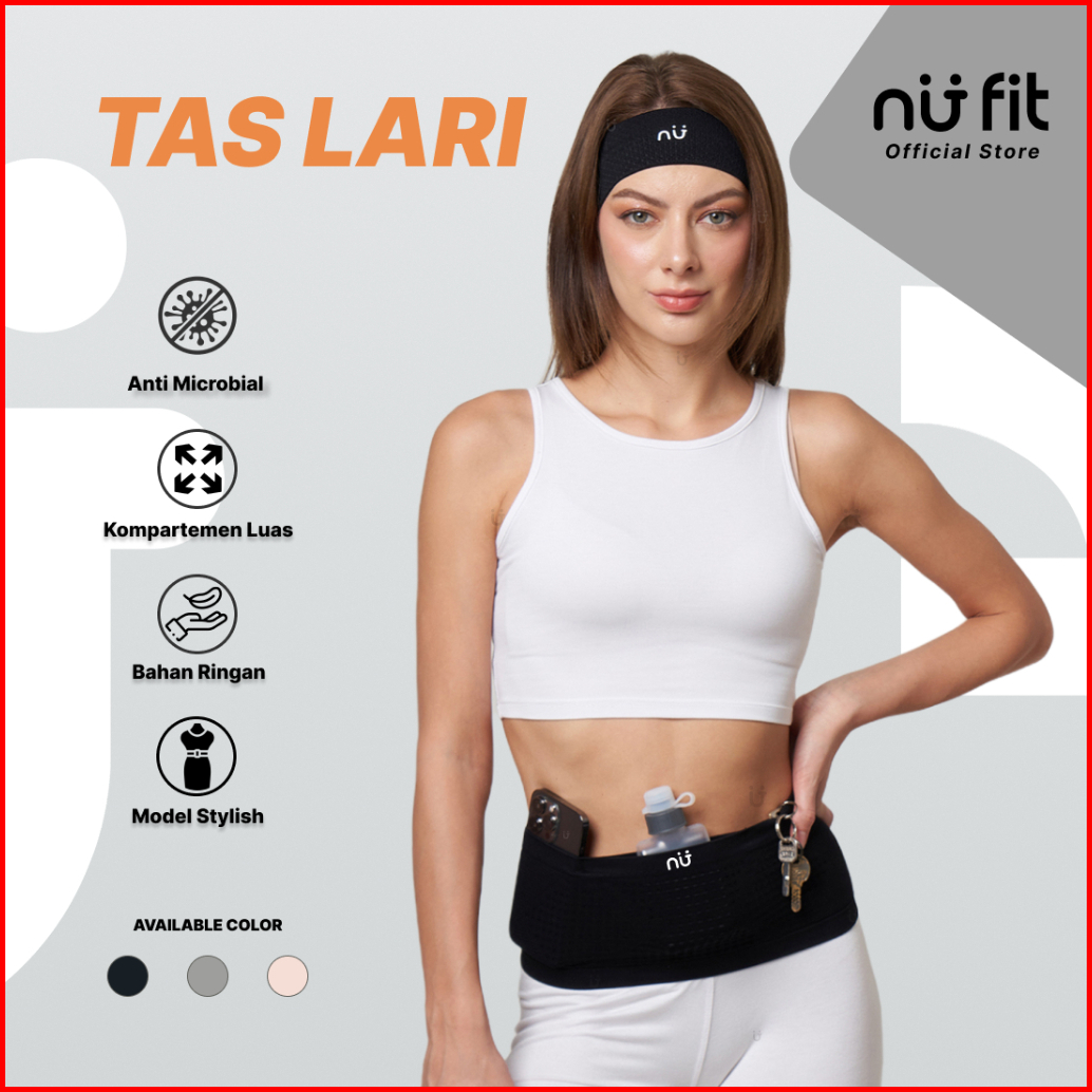 Nu Fit - Hitam Abu Dan Pink Tas Lari Unisex - Tas Lari - Tas Pinggang Olahraga - Tas Pinggang Multi Fungsi - Running Bel