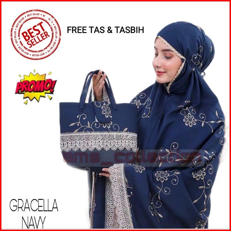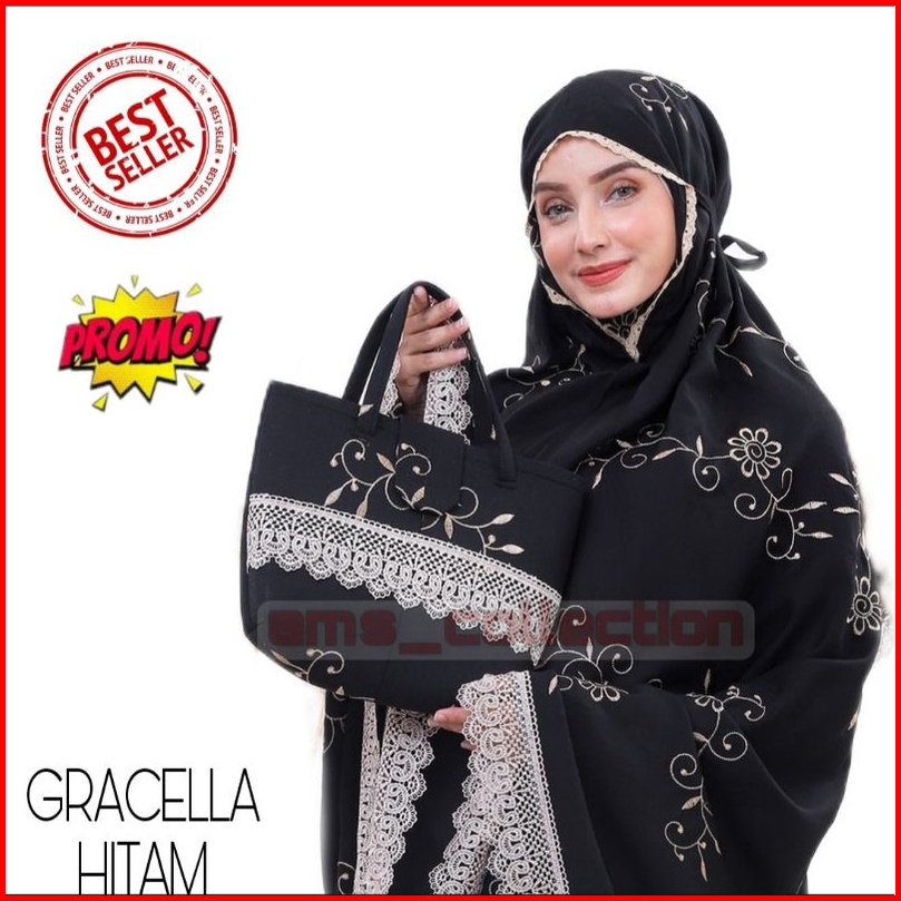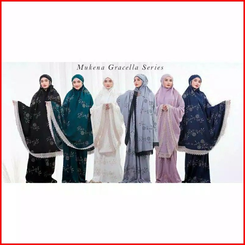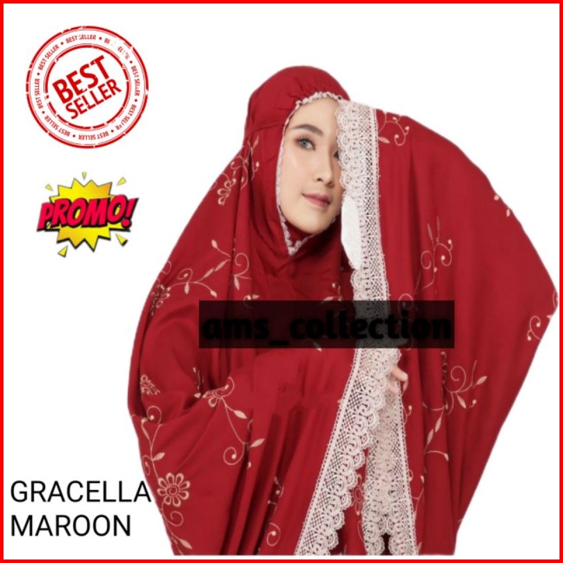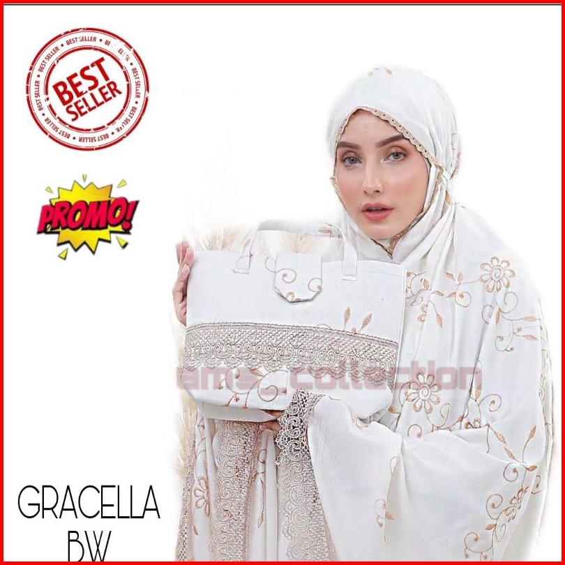 Mukena Dewasa Gracella Jumbo Full Bordir Bunga Teratai Mewah