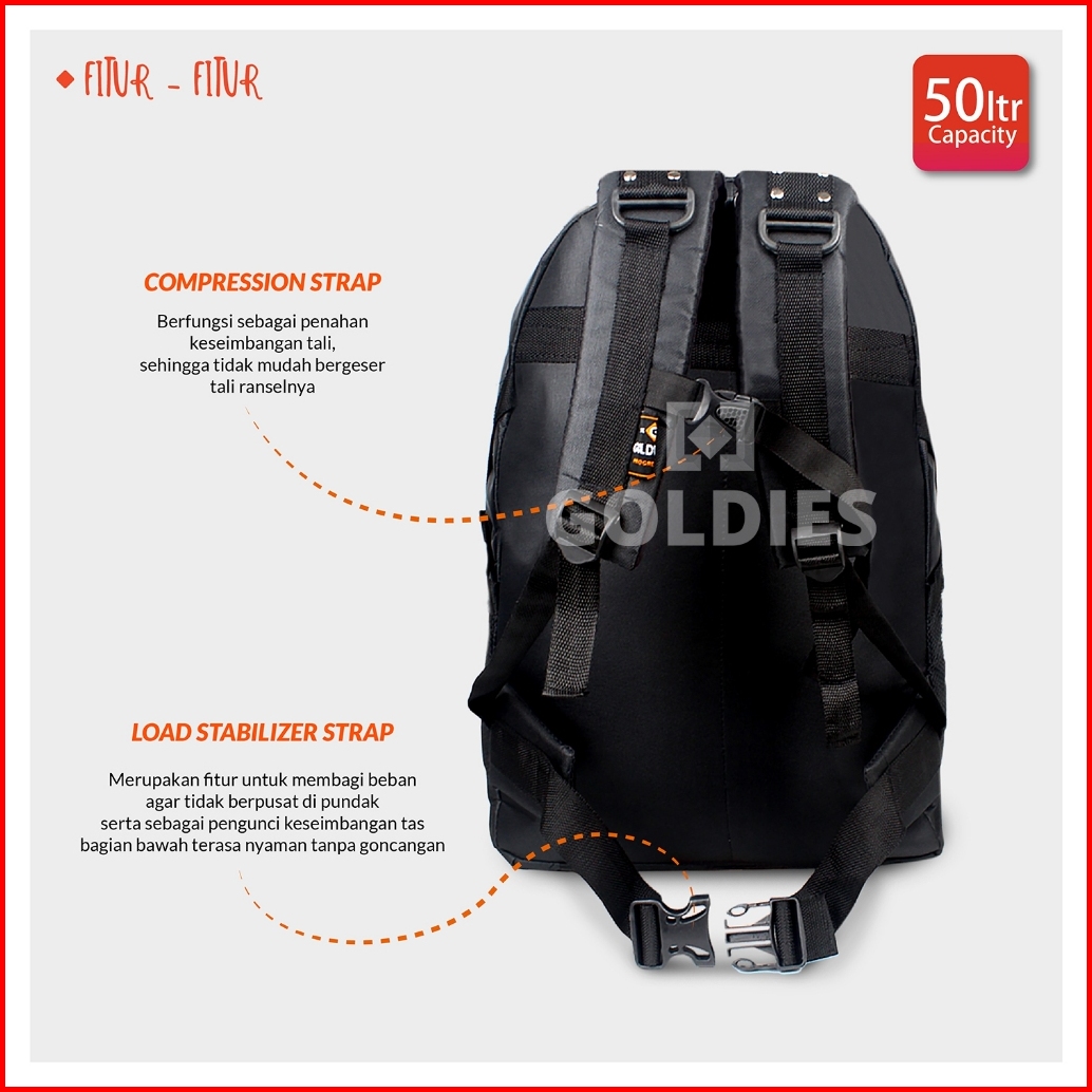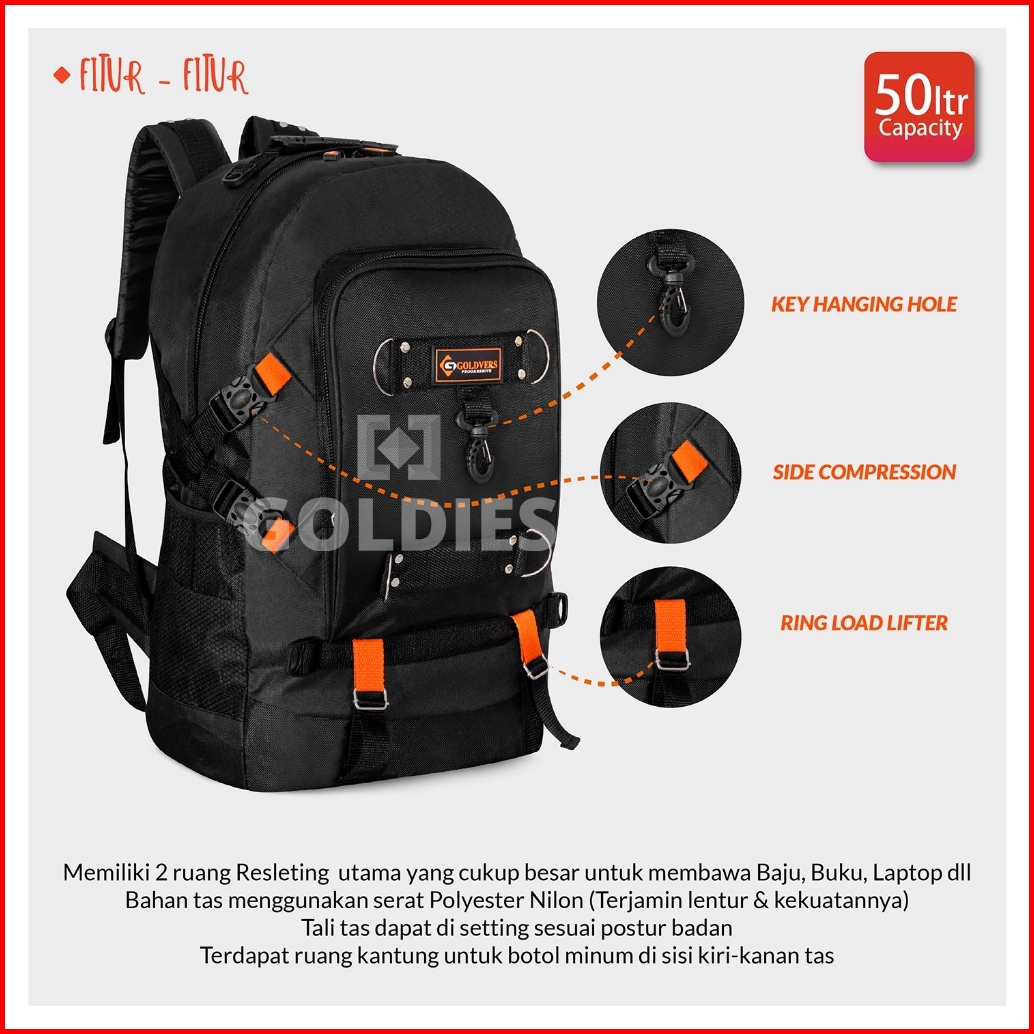 Goldvers Tas Ransel Pria Jumbo Backpack Pakaian Traveling Tas Mudik 50litter Original Import
