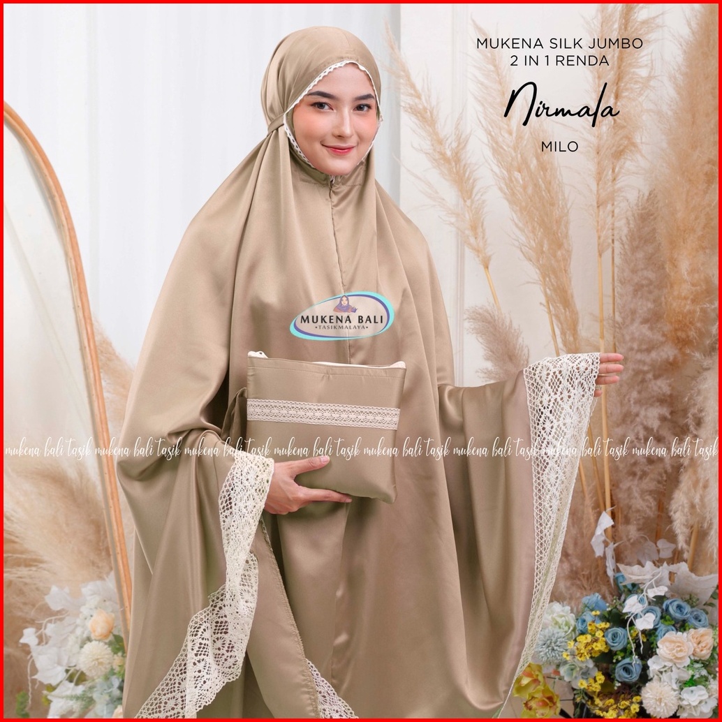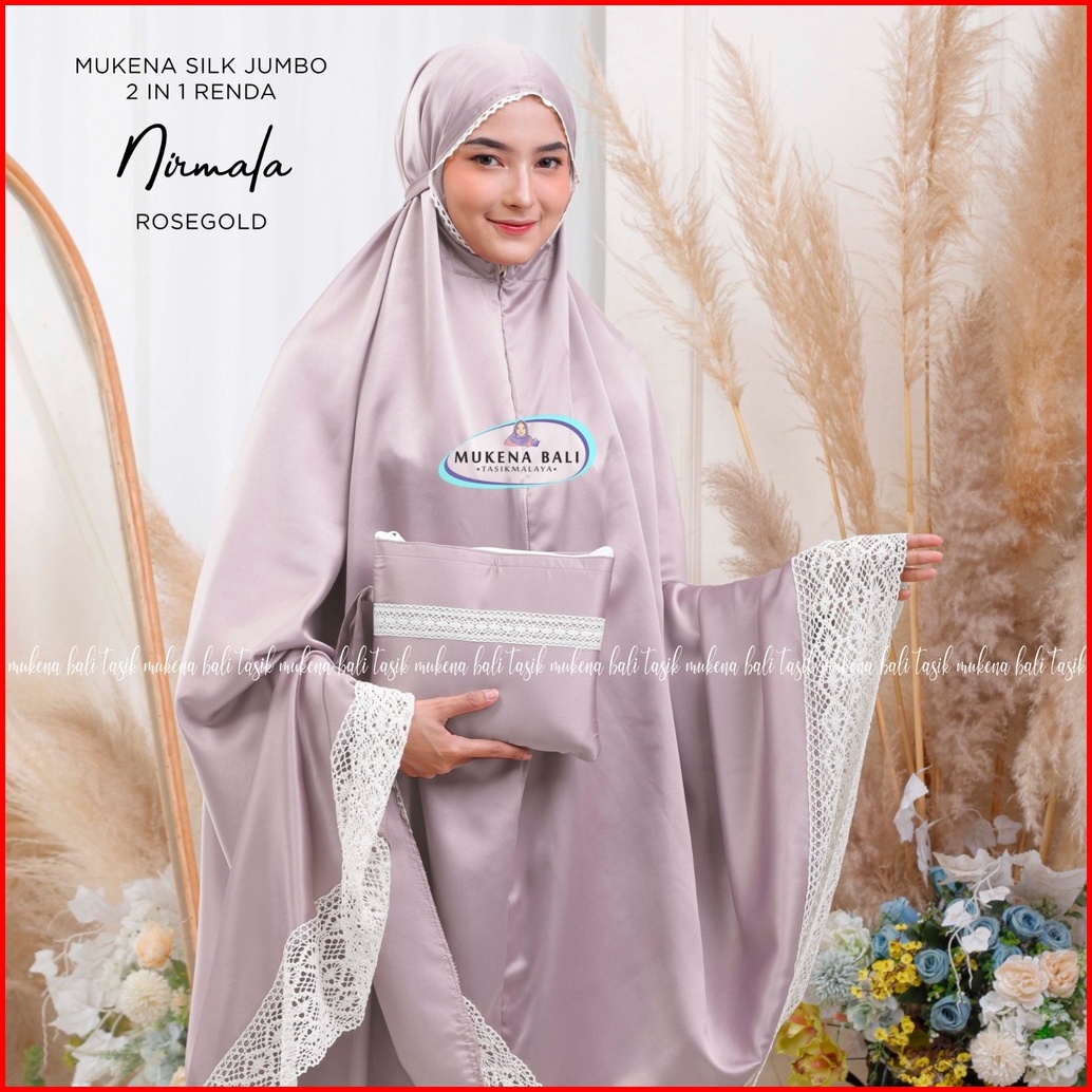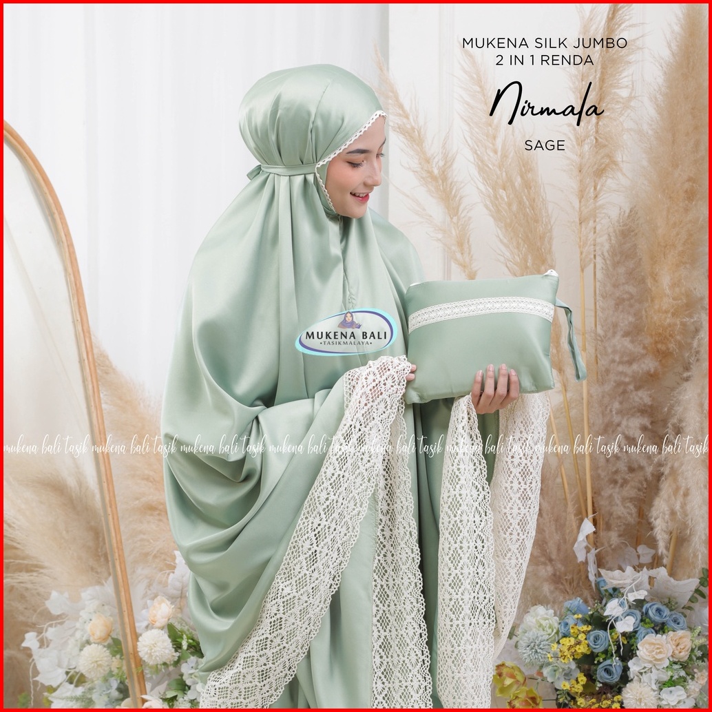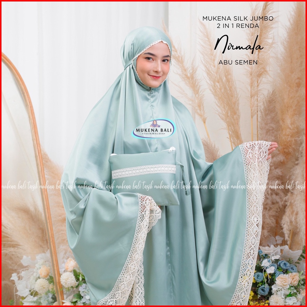 Mukena Bali Tasik - Mukena Dewasa Polos Jumbo Silk 2 In 1 Renda Nirmala