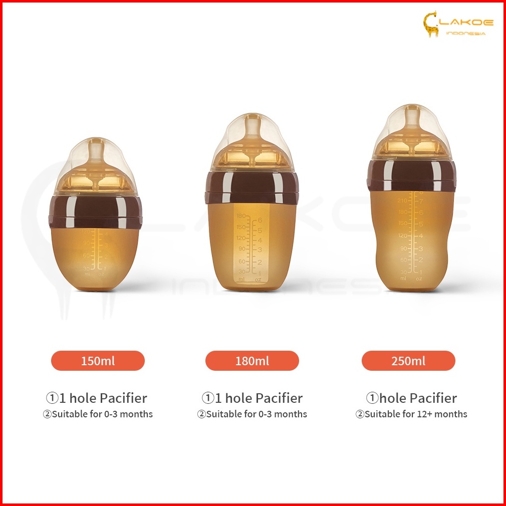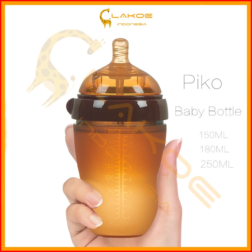 Piko Bello Botol Susu Bayi Silikon Leher Lebar Wide Neck Warna Coklat Botol Bayi Dengan Sedotan