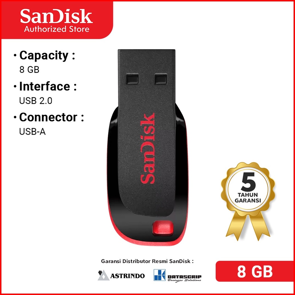 Flashdisk Sandisk 8gb Usb 2.0 Cruzer Blade Cz50 - Garansi Resmi 5 Tahun