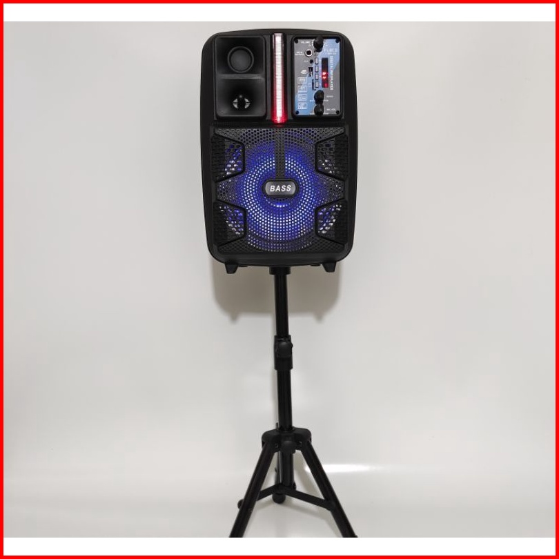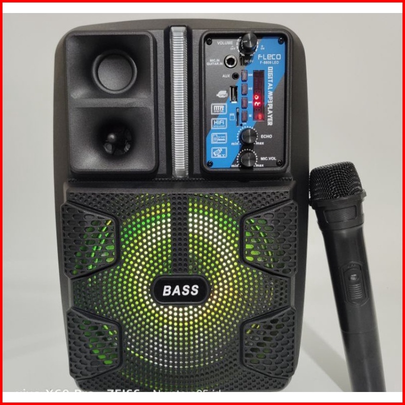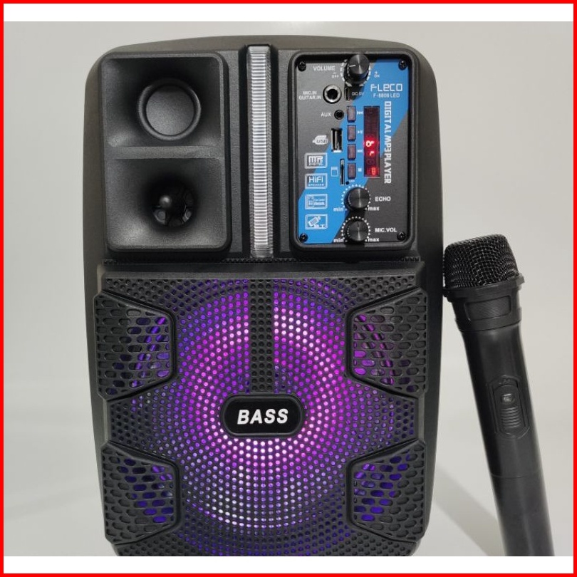 Speaker Bluetooth Fleco X-bass F-8809led 8 5 Inchi Free Tripod Dan Microphone Wireless Karaoke Remot Control Salon Aktif