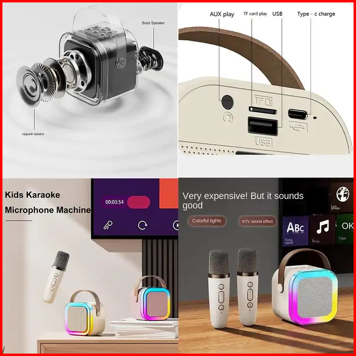 Karaoke Speaker Wireless Bluetooth 2 Mic 1 Set Mini Portabel Lucu Colorful Rgb Karaoke Super Bass Mini Set Karauke Speak