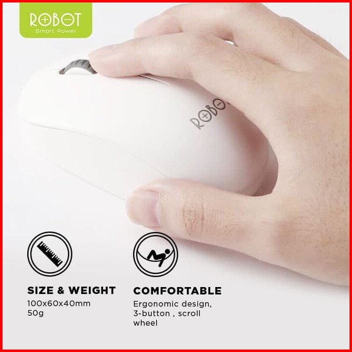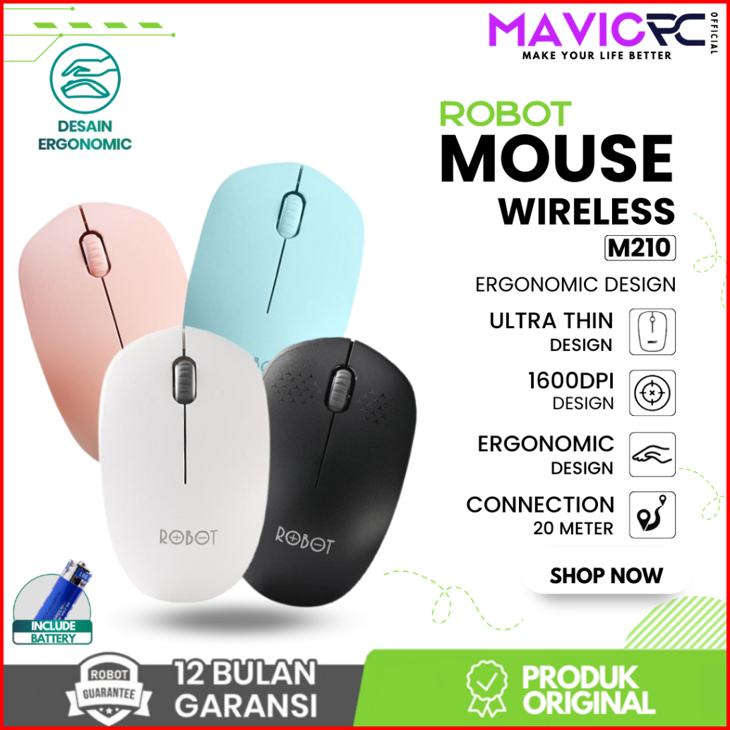 Robot M210 Mouse Wireless 2.4g Optical Usb Mouse Gaming 1600dpi White - Garansi Resmi 1 Tahun