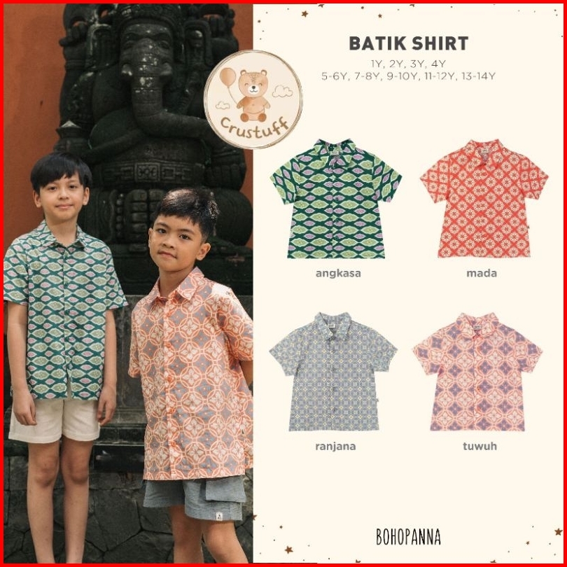 Batik Shirt Pendek Bohopanna B108 B75 Kemeja Batik Anak Pendek Kemeja Batik Pendek Anak Bohopanna Atasan Batik Anak Unis