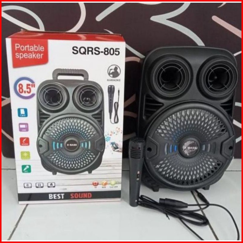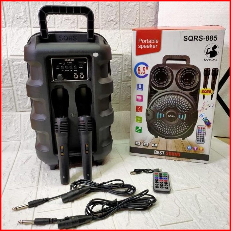 Speaker Bluetooth Karaoke 8 5 Inch Sqrs-885 Bonus 2 Mic Kabel Karaoke X-bass Speaker Salon Aktif Speaker Wireless