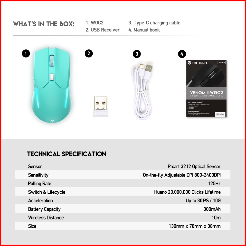 Fantech Wgc2 Venom Ii Mint Edition Gaming Wireless Mouse