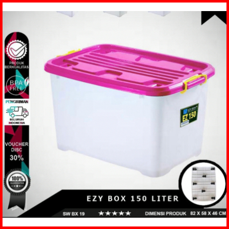 Container Box Ezy Cb 150 Liter Kotak Tempat Penyimpanan Wadah Plastik Dengan Rodah Takasimur Kuat Kokoa Store