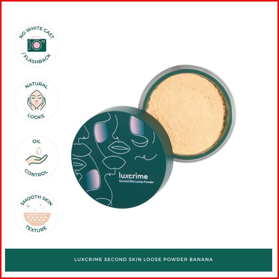 Luxcrime Second Skin Loose Powder Bedak Tabur Banana Deep Light Tekstur Kulit Halus Kontrol Minyak Bedak Tabur Mencerahk