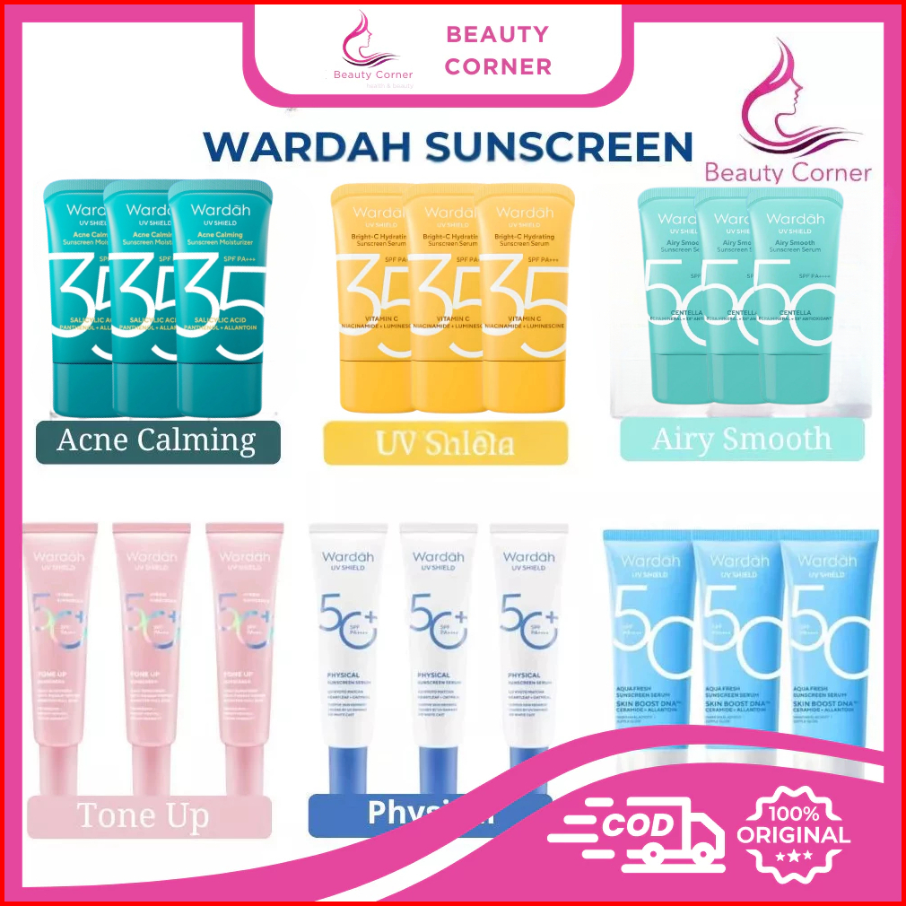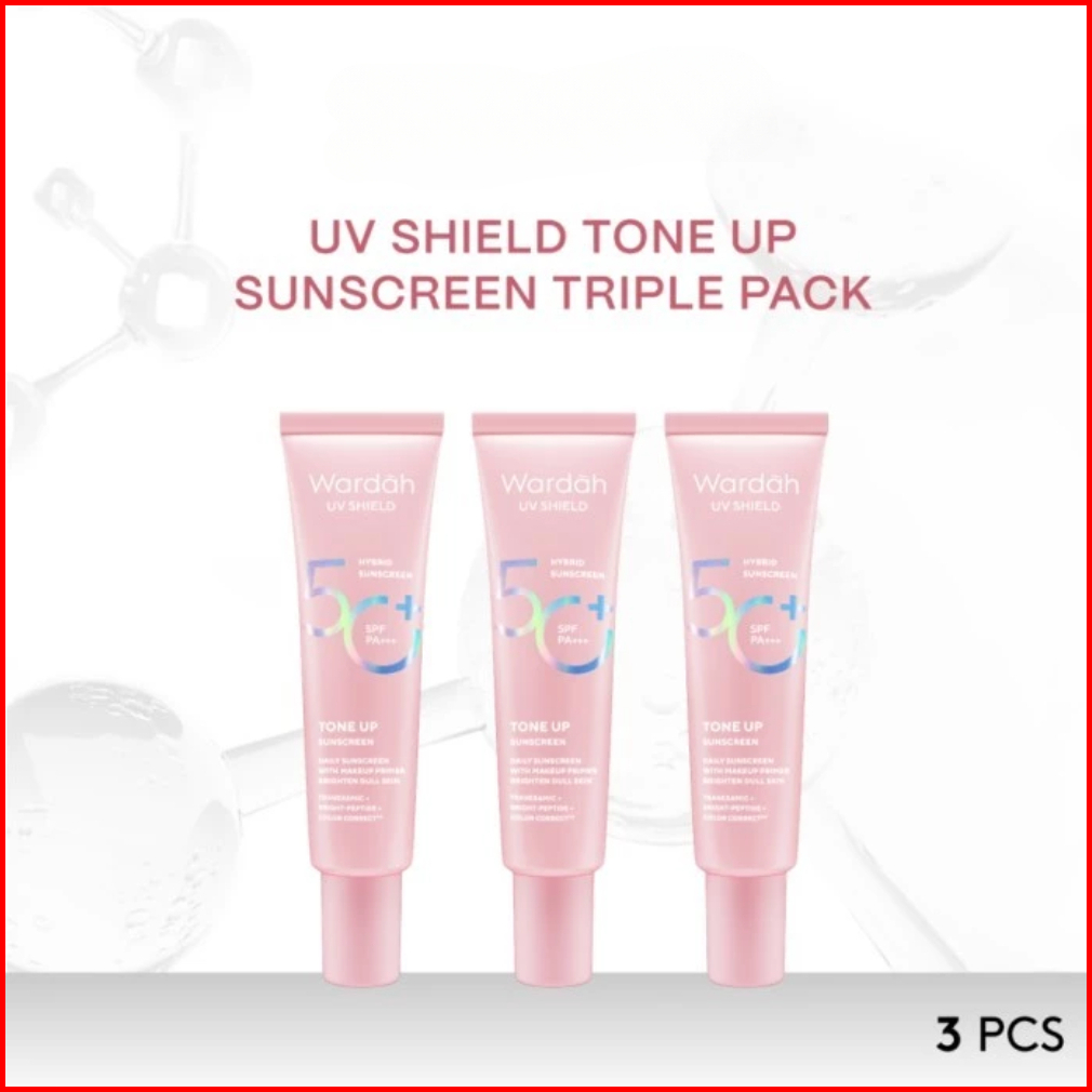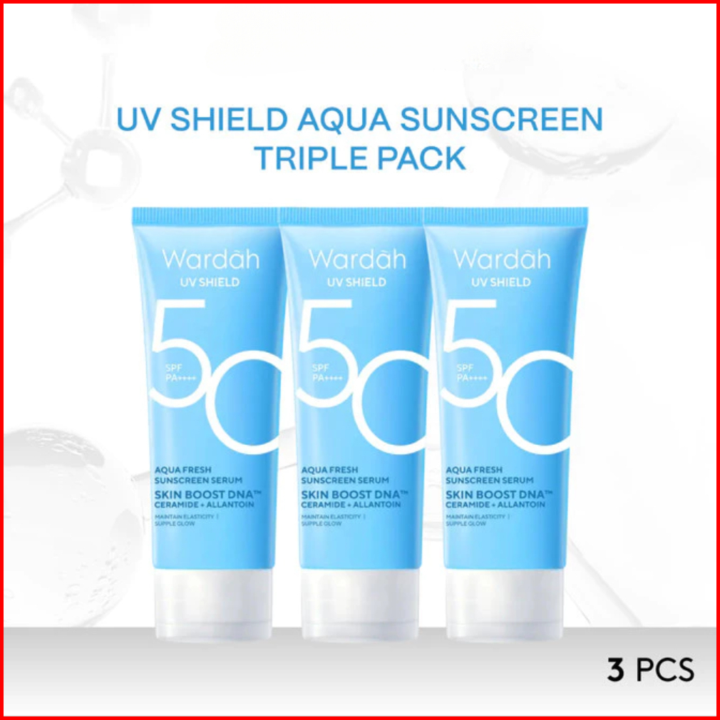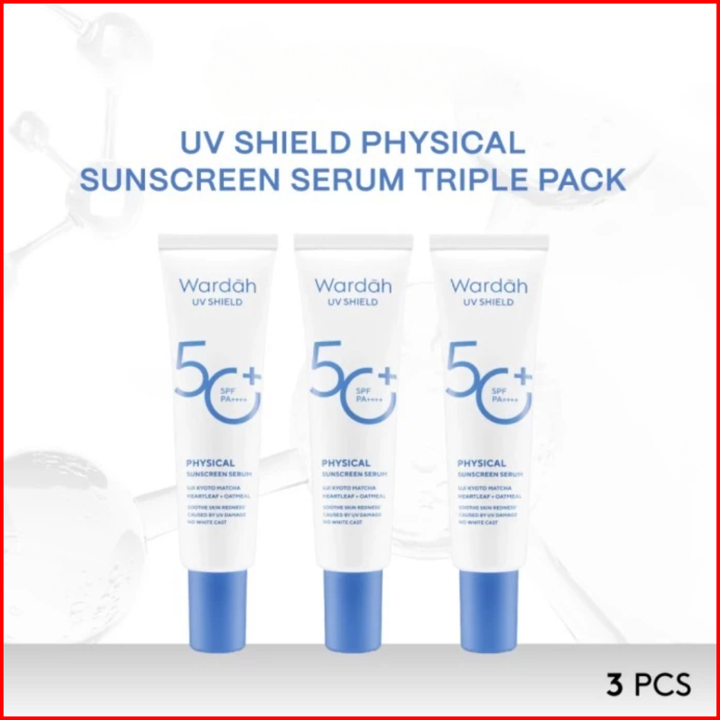 Triple Pack Wardah Uv Shield Sunscreen Gel Spf35 Spf 50 Acne Calming Essensial Gel Airy Smooth Tone Up Physical Aqua Fre