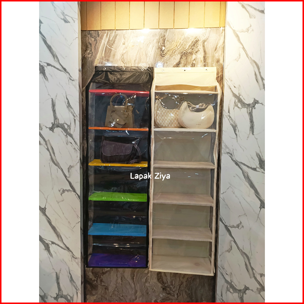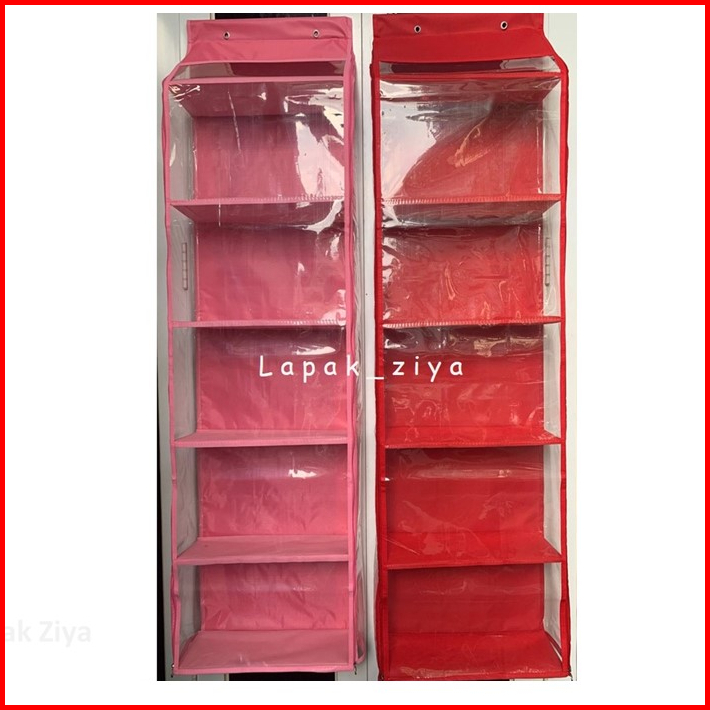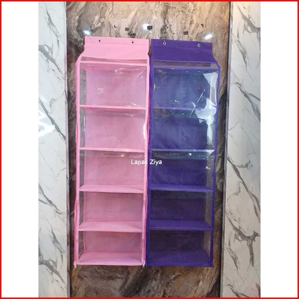 Rak Gantung Tas Polos Rak Gantung Triplek Sepatu Tas Gantung Jumbo Polos 5 Kolom Resleting Rak