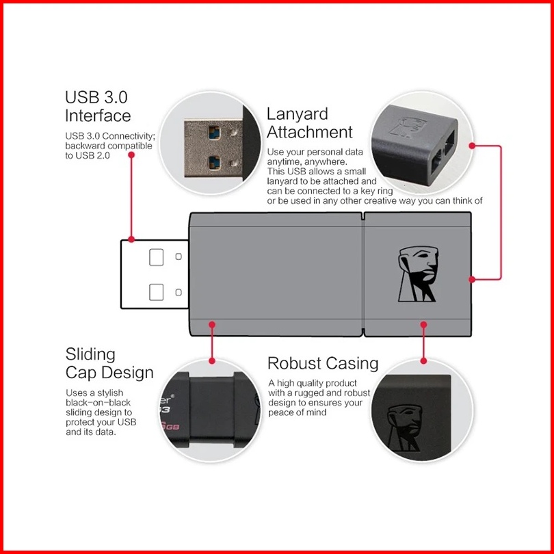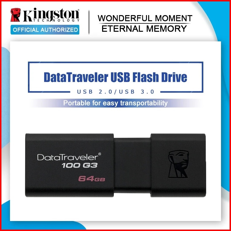Kingston Flashdisk Dt100g3 Usb 3.0 Kapasitas 32gb 64gb 128gb 256gb Portabel Mobil Laptop Flash Drive