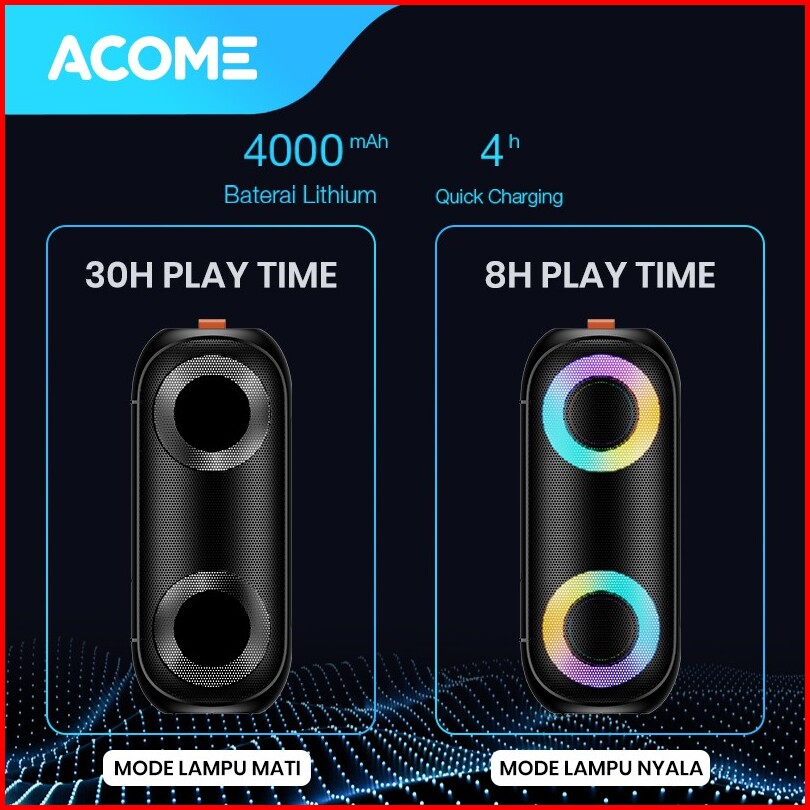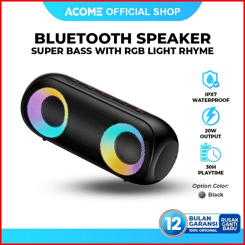 Acome Super Bass Speaker Bluetooth 5.0 20w Ipx7 Waterproof Rgb Light Rhyme Rave Party A20