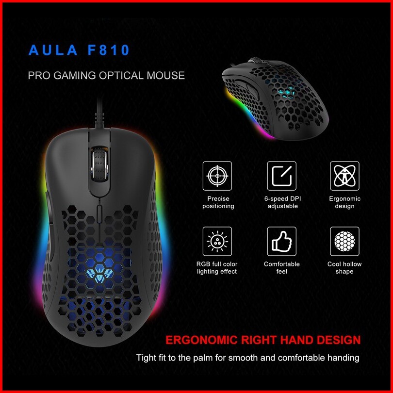 Mouse Gaming Honey Comb Aula F-810 Rgb Lighting - 6400dpi - Macro System - 7 Buttons - Fine Texture