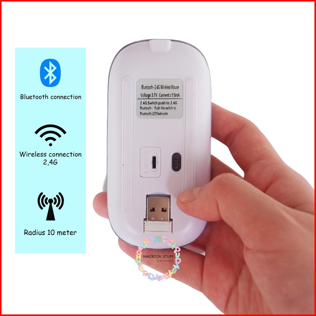 Wireless Bluetooth Silent Led Mouse Pastel Color Ultra Light Slim Optical Mac Macbook Window Linux Chrome