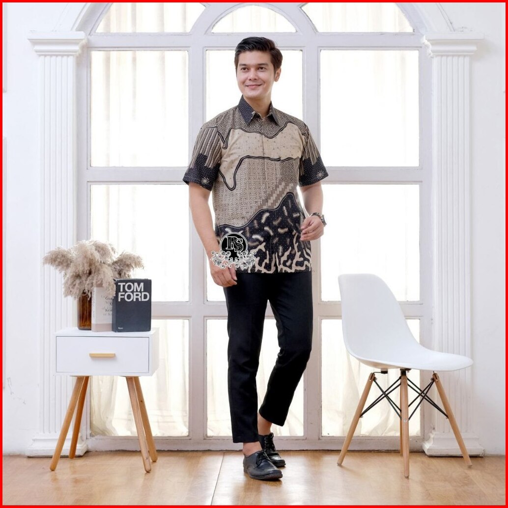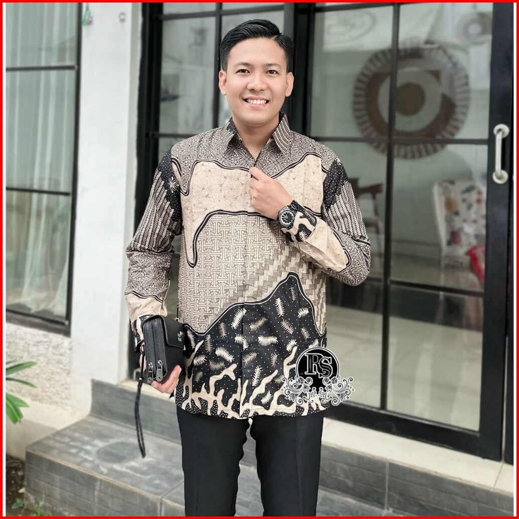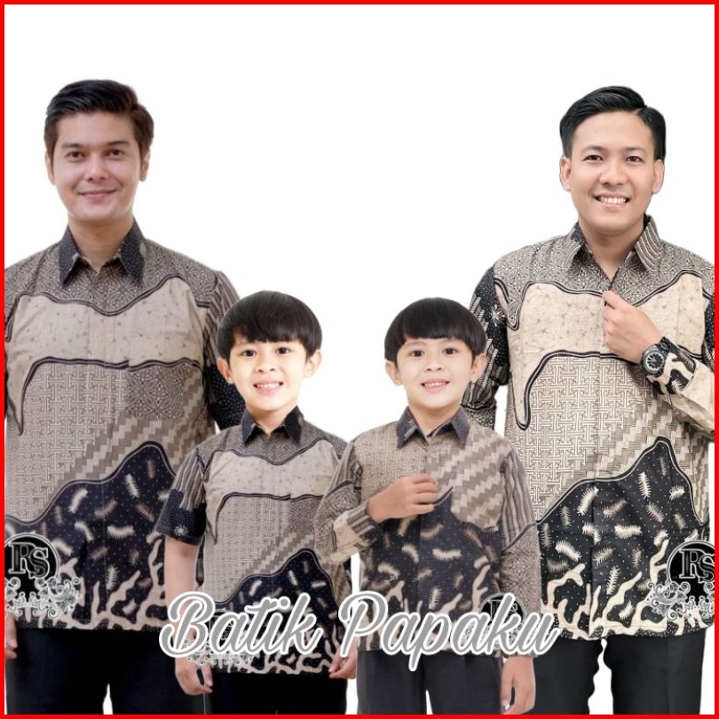 Kemeja Batik Anak Laki-laki Lengan Panjang Batik Ayah Dan Anak Cowok Warna Coklat Susu Cream Coksu