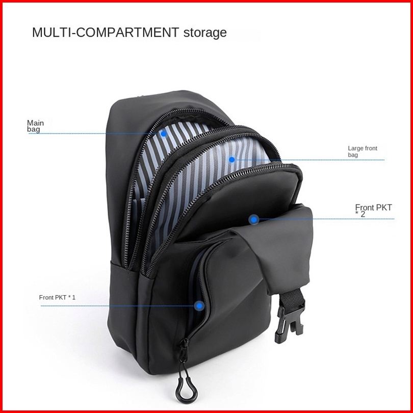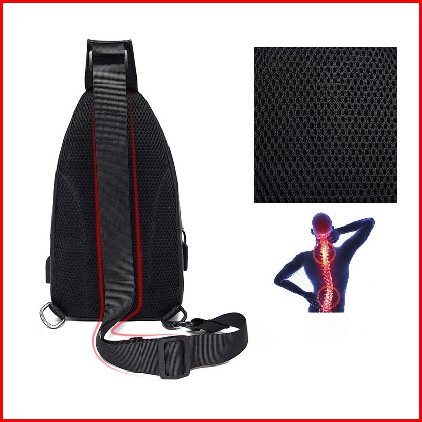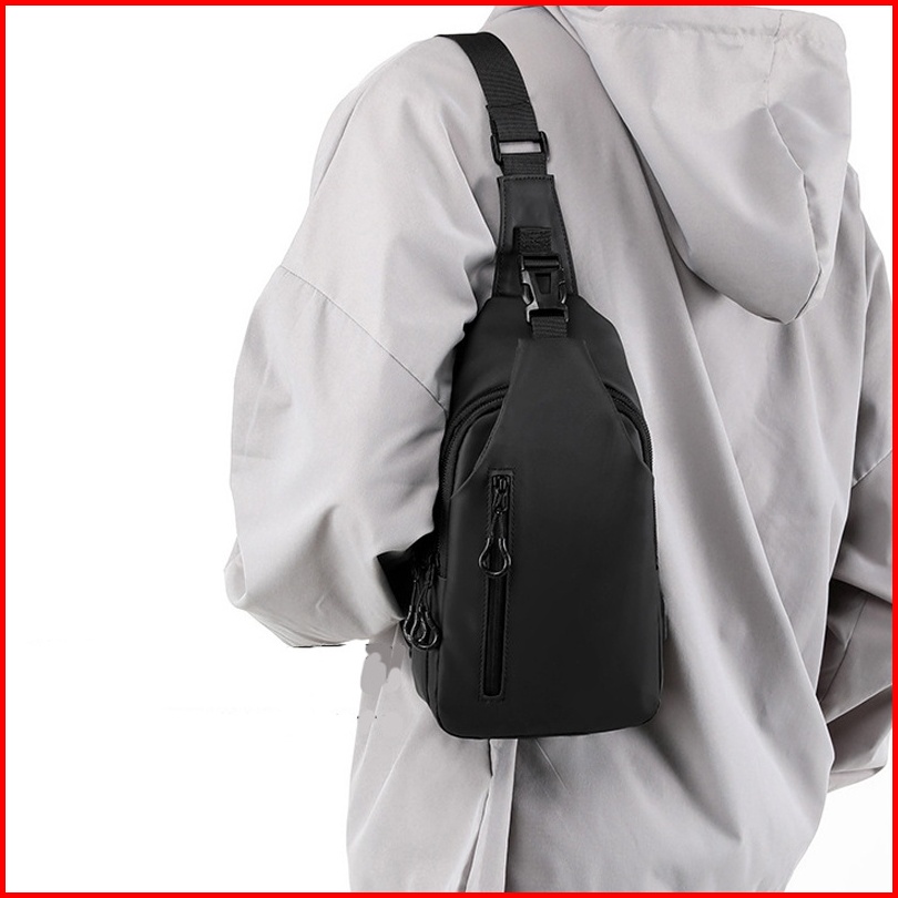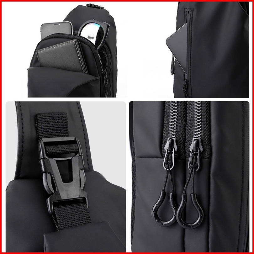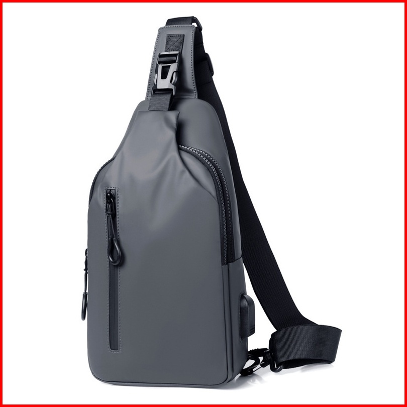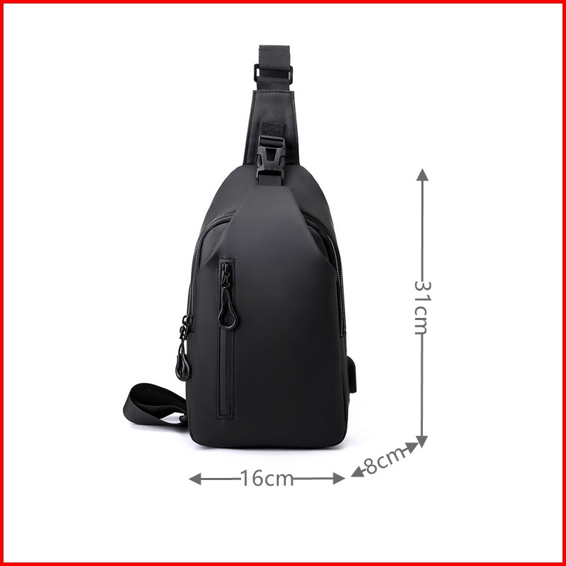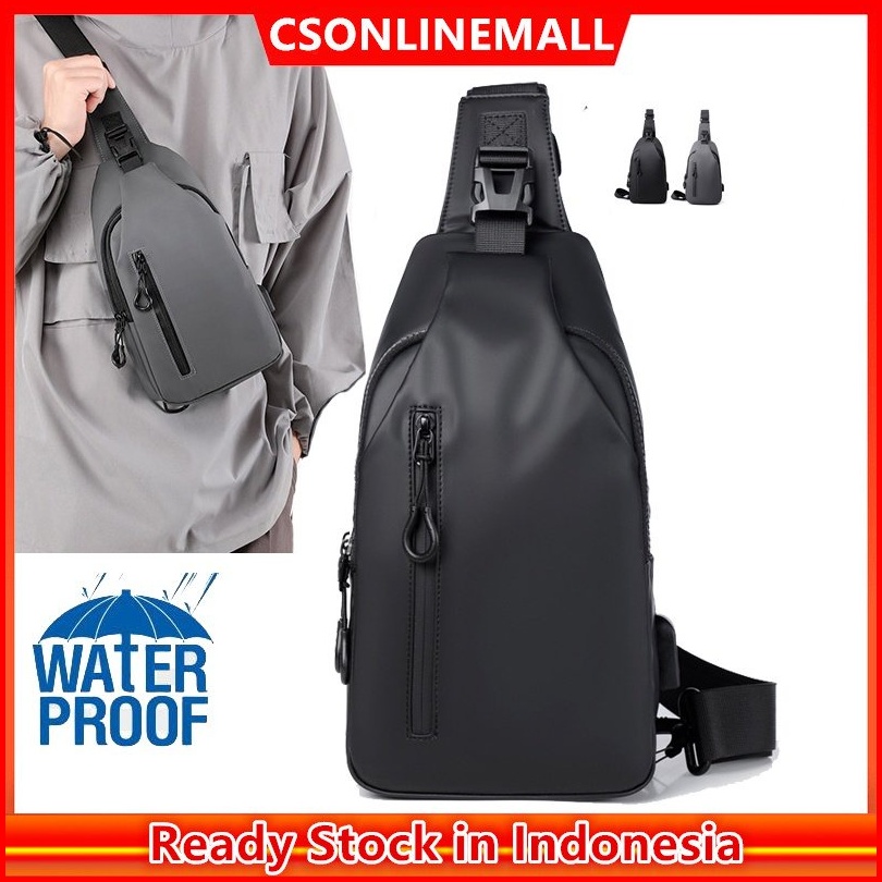 Csonlinemall Tas Selempang Pria Bahan Nilon Usb Charge Tas Dada Sling Bag Waterproof