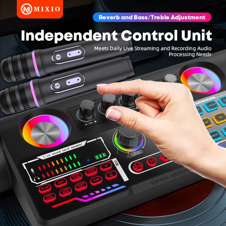 MIXIO YS-300 Soundcard Bluetooth Speaker 2 Microphone Wireless Karaoke All in one