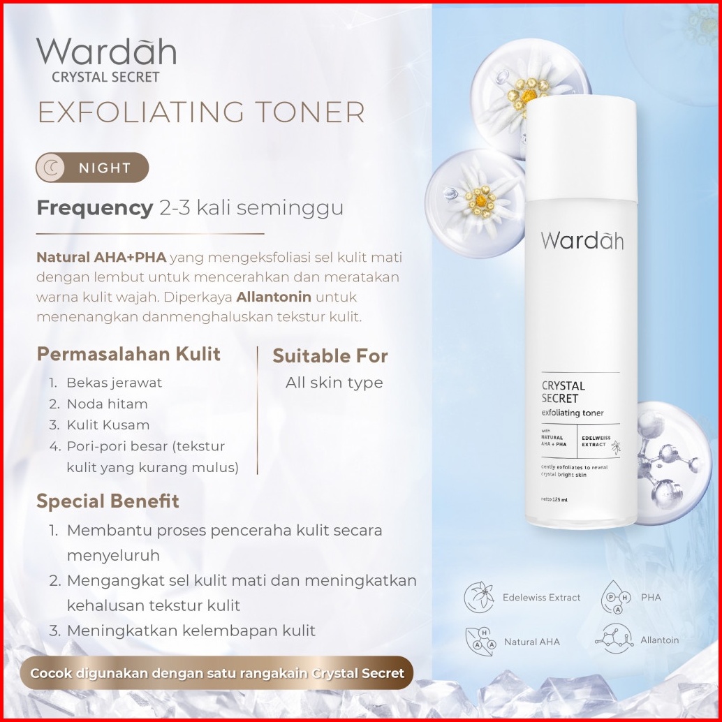 Wardah Crystal Secret Exfoliating Toner With Natural Aha Pha 125 Ml - Toner Untuk Eksfoliasi Dengan Extract Edelweiss -