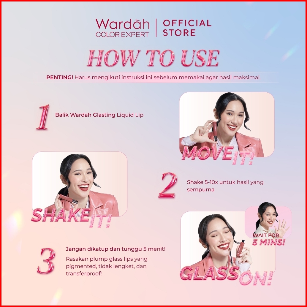 Wardah Glasting Liquid Lip - Hi-pigmented Glass Color Ringan Tidak Lengket Transferproof