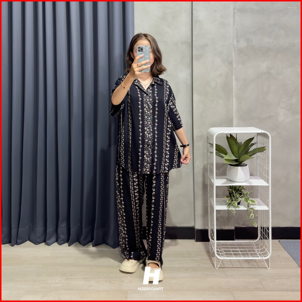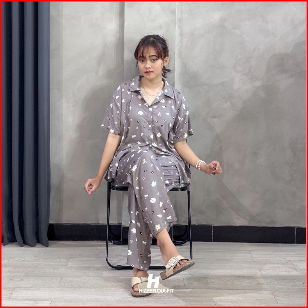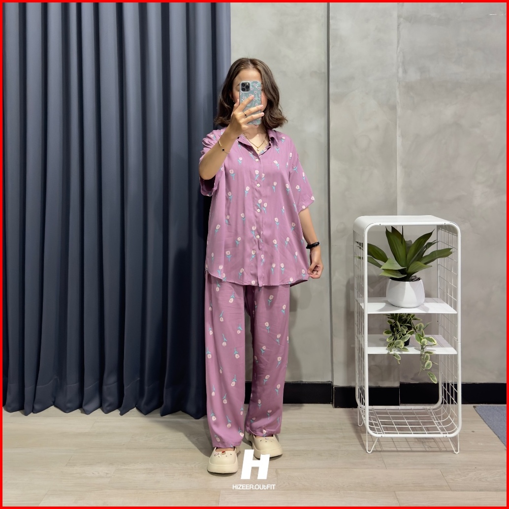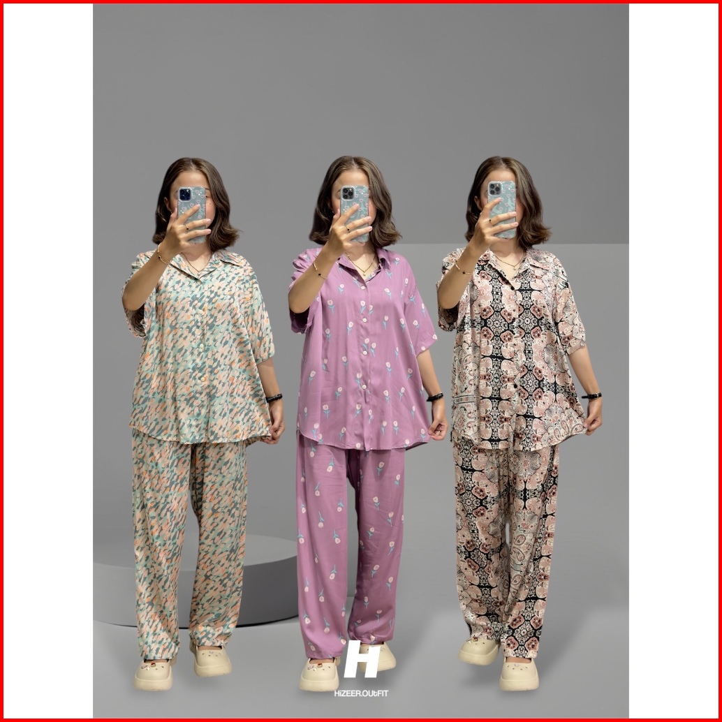 One Set Rayon Pajamas - Piyama Setelan Kemeja Pendek Celana Panjang
