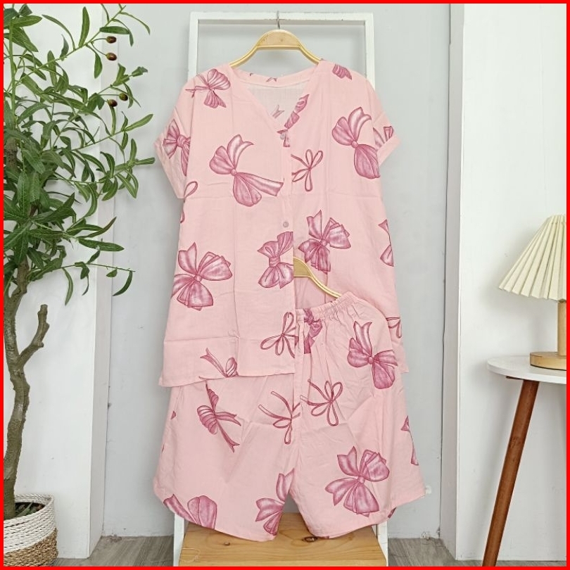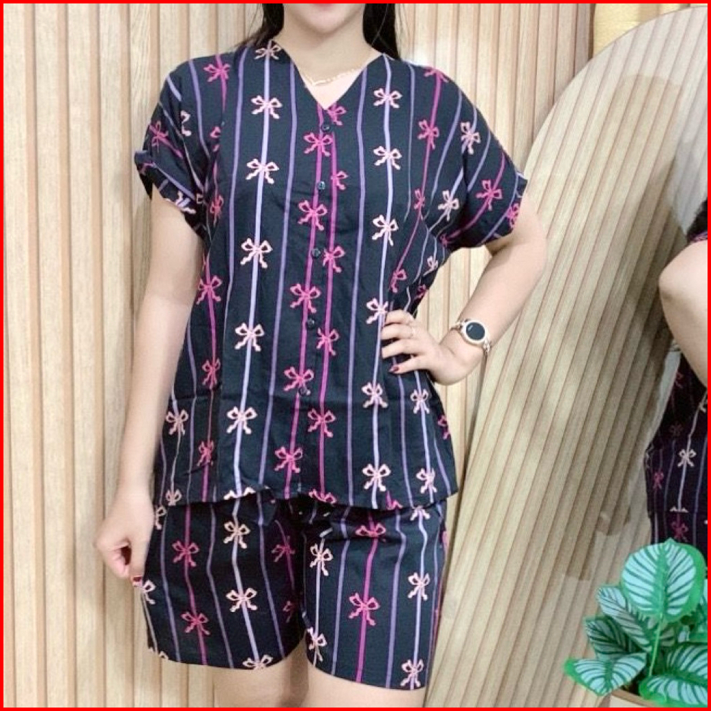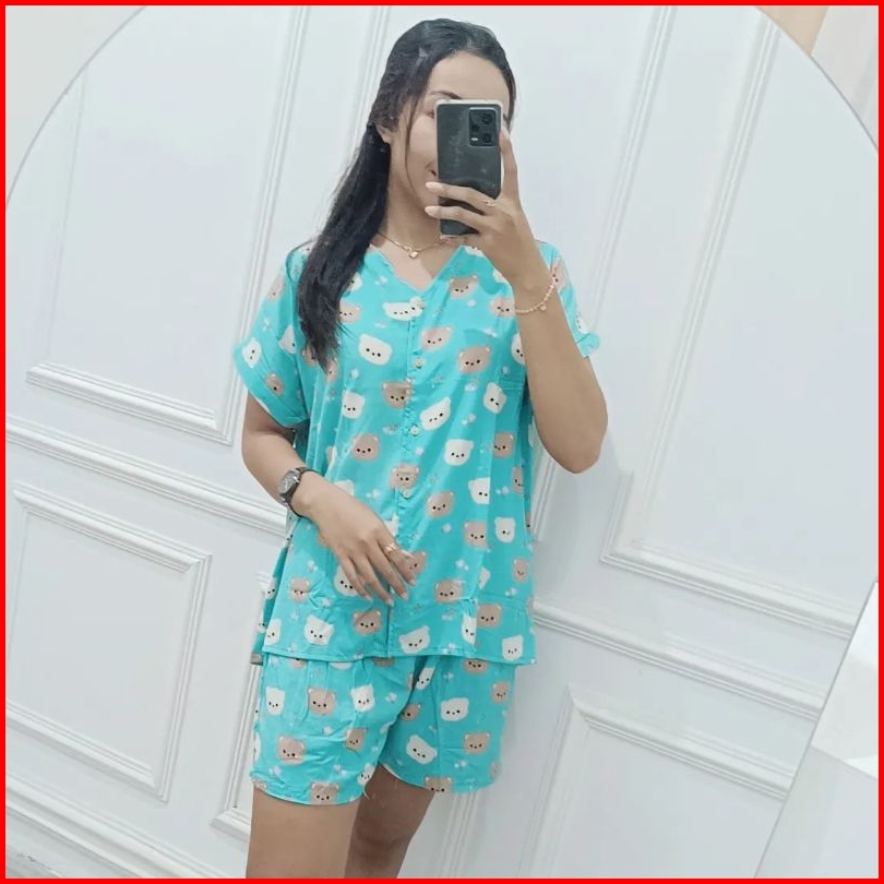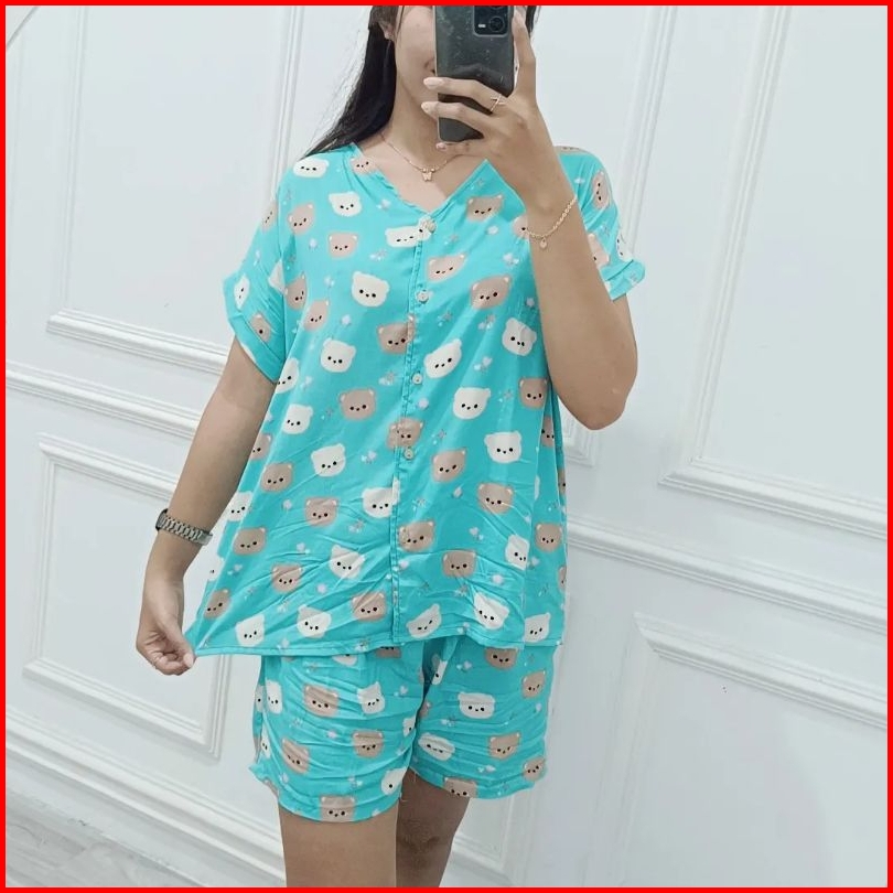 Vneck Pendek Babydoll Jumbo Busui Pendek Motif