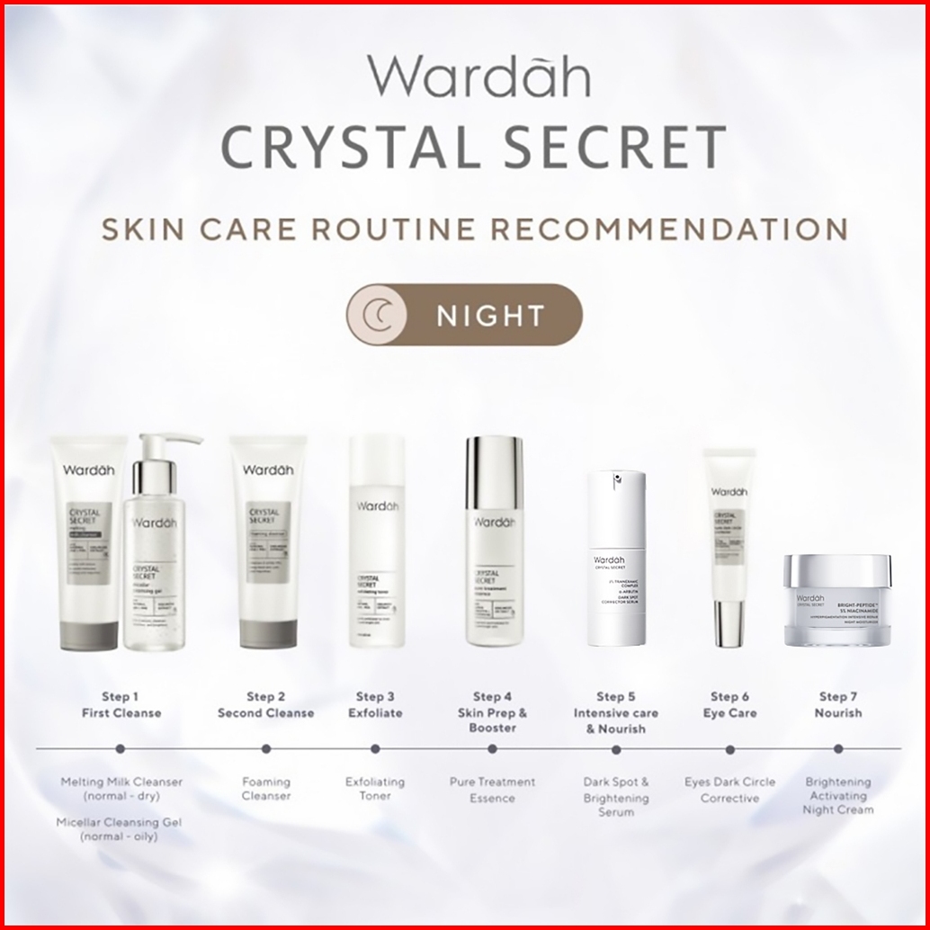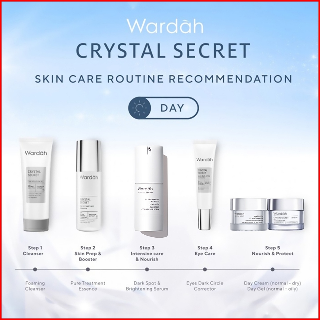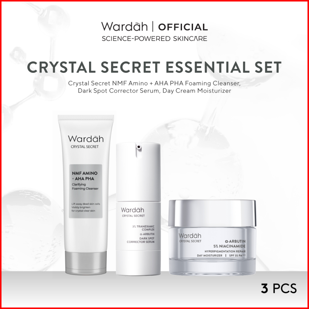 Wardah Crystal Secret Essential Package Cleanser 100 Ml Serum 20 Ml Day Cream 30 G - Rangkaian Skincare Untuk Mencerahka