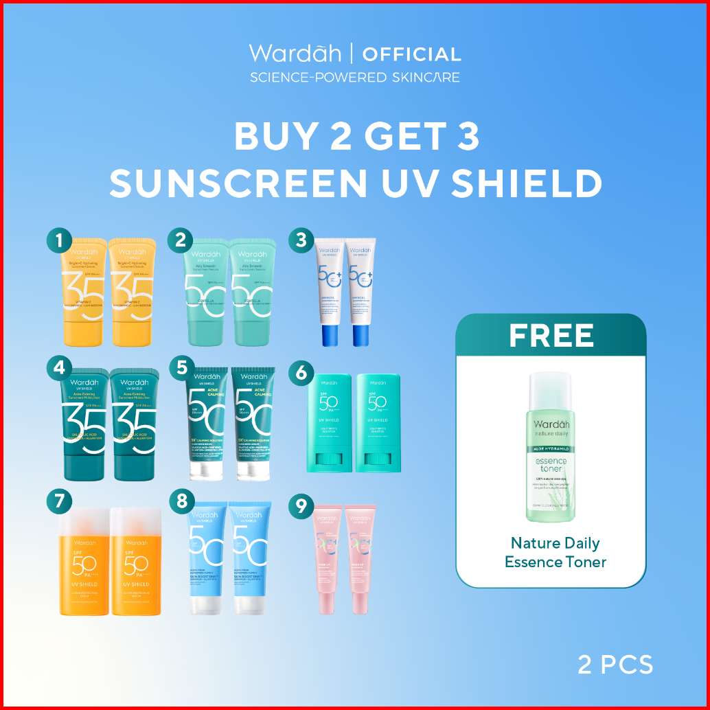 Buy 2 Get 3 Free Nature Daily Essence Toner Twinpack Wardah Uv Shield Airy Smooth Acne Calming Aqua Fresh Essential Tone