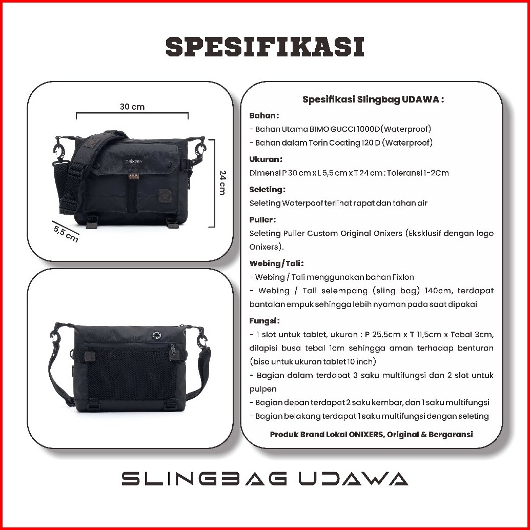 Onixers Udawa Slingbag Tas Selempang Pria Waterproof