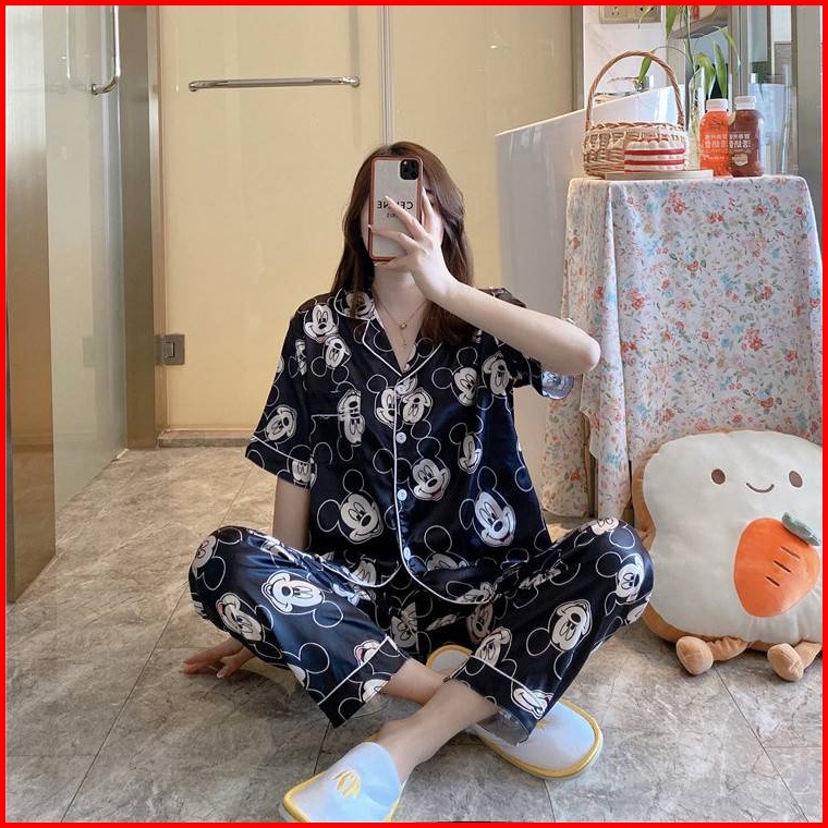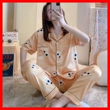 Stelan Cp Piyama Satin Scp Kancing Import Baju Lengan Pendek Celana Panjang