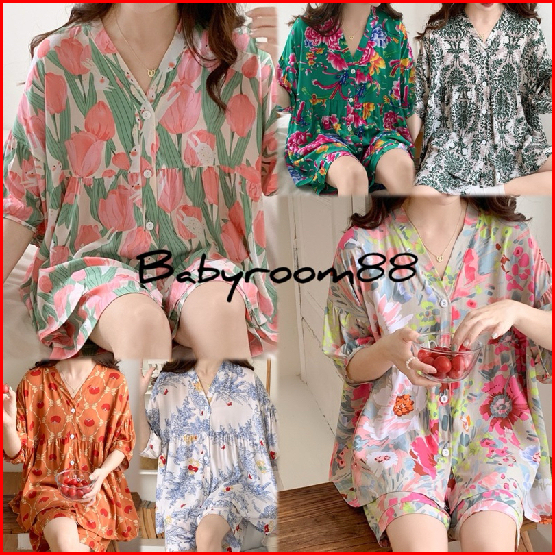 Babyroom88 Setelan Piyama Set Pendek Karin Rayon Cotton Silk Lembut Adem Halus