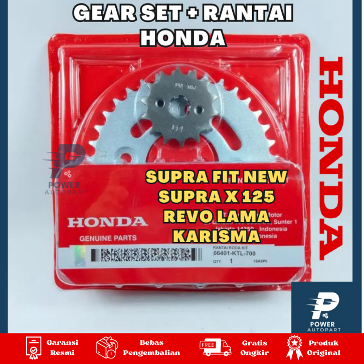 Gear Set + Rantai supra x 125 revo kharisma all bebek honda, TERMURAH