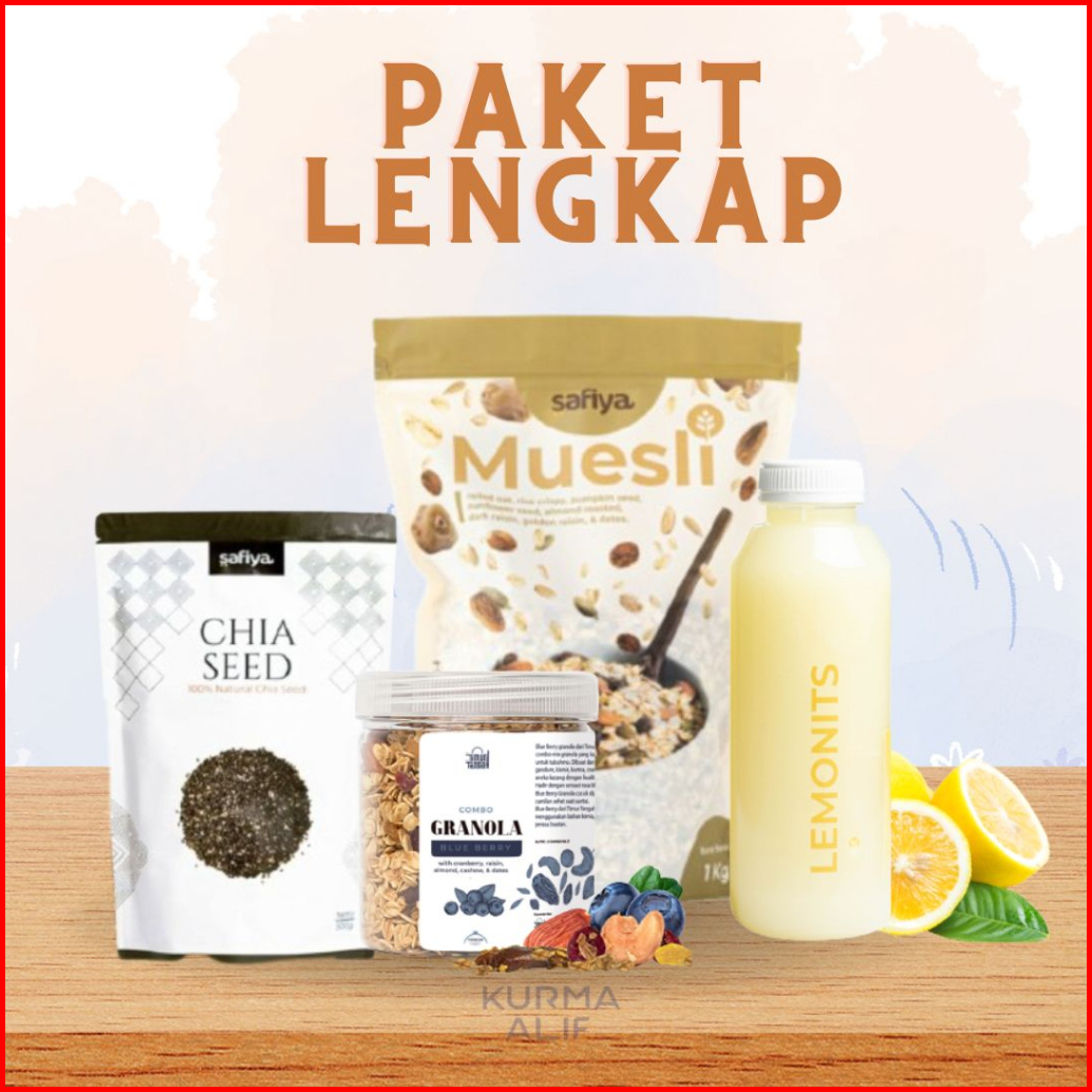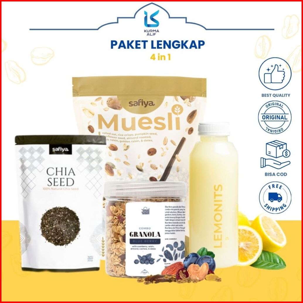 4 In 1 Full Package Diet Muesli 500gr Lemonits 500ml Chiaseed 250gr Granola 250gr