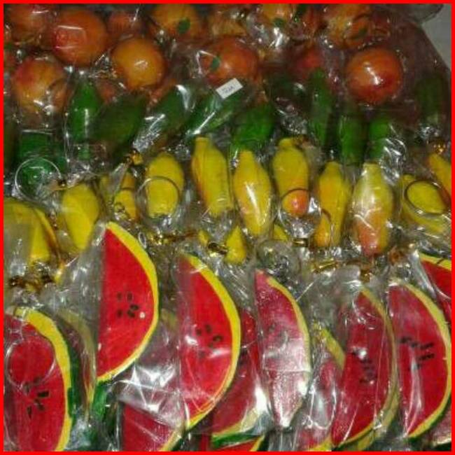 Isi 100pcs Gantungan Kunci Miniatur Buah Kayu