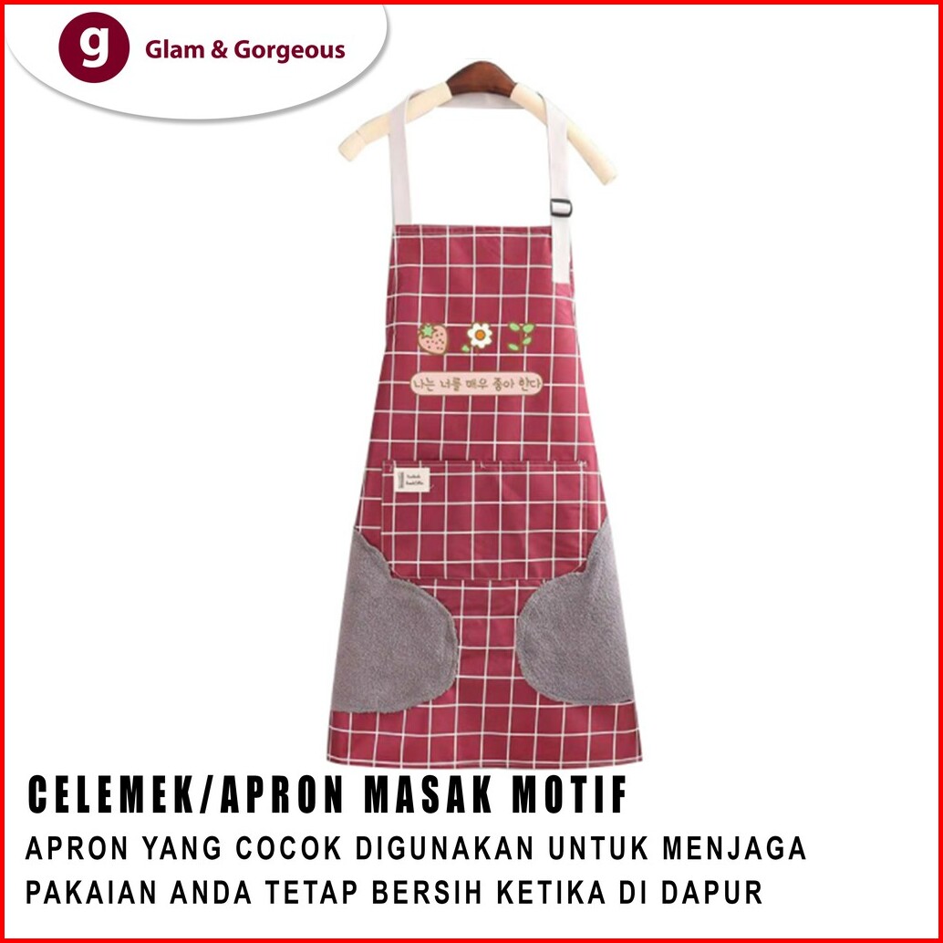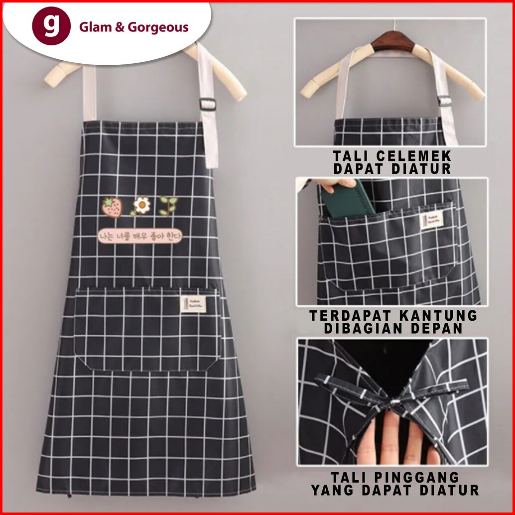 Apron Celemek Masak Barista Dapur Motif Garis Waterproof Cm011