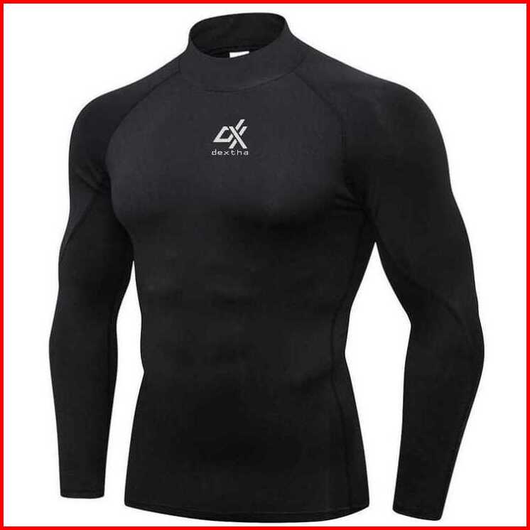 Dextha Sportswear Performance Baselayer Long Sleeve Thumbhole Manset Daleman Olahraga Pria Lengan Panjang Kerah Tinggi C